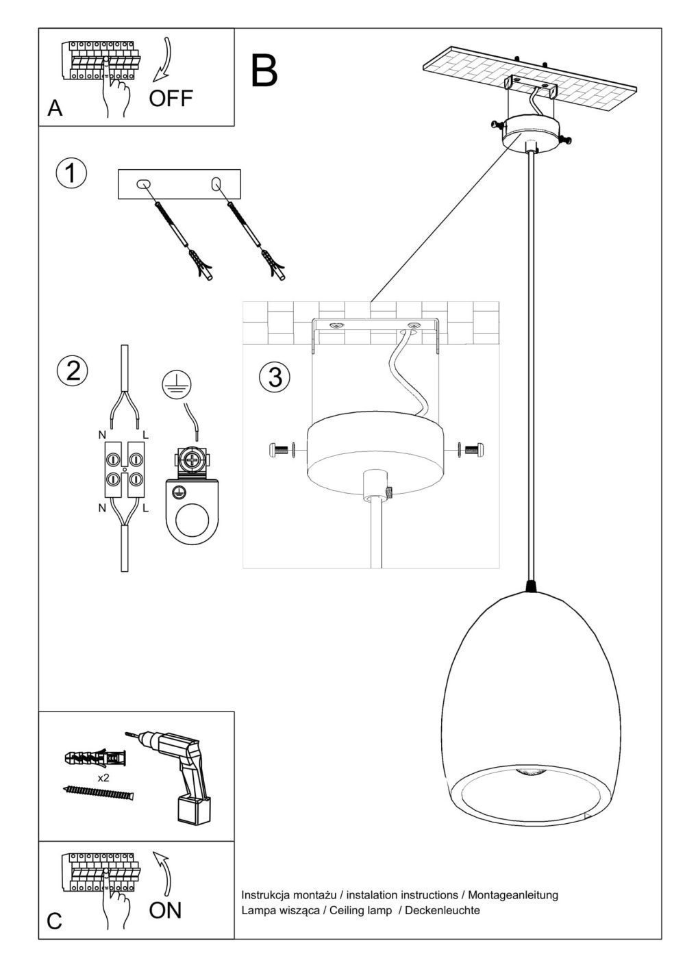 - Źródło światła: E27, 1x60W, 1x15W LED