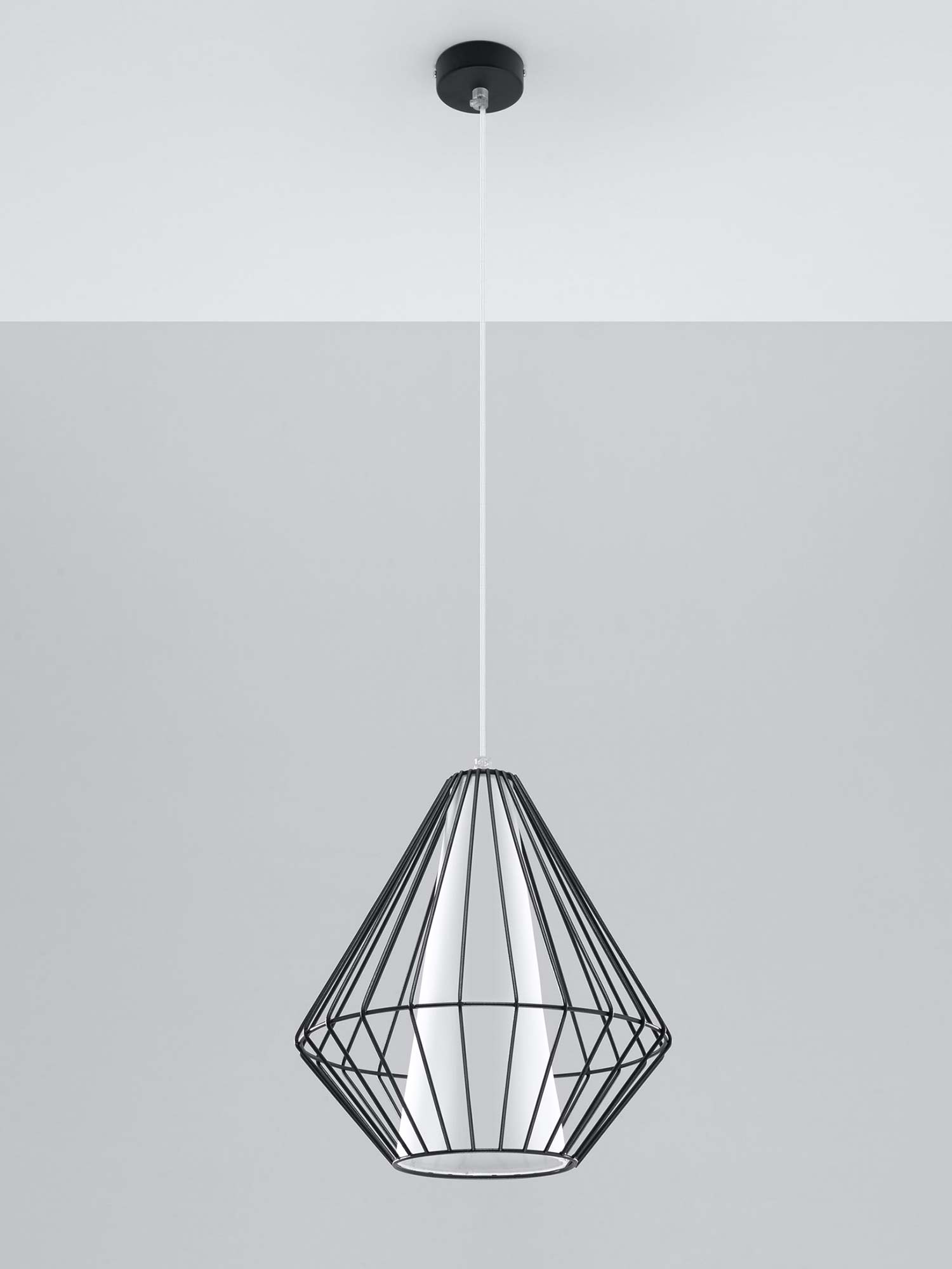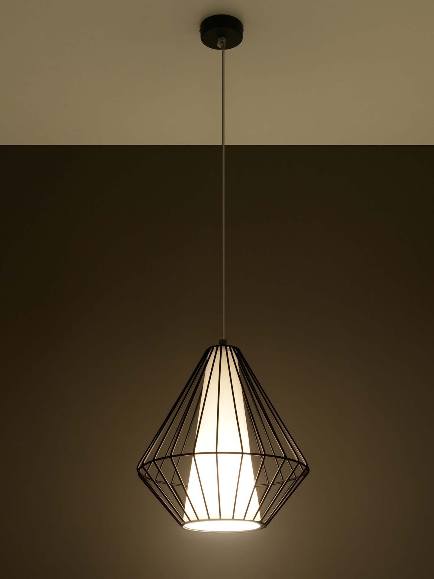JASMIN świetnie dogaduje się z nowoczesną estetyką: od loftu po scandi i japandi. Biała kopuła rozprasza światło łagodnie, a ażurowa, czarna (lub biała) struktura klatki dodaje rytmu i lekkości. Nad stołem, wyspą kuchenną, w sypialni czy przy lustrze w holu – ta lampa nie tylko oświetla, ale i modeluje przestrzeń, porządkując ją i nadając jej biżuteryjnego szlifu.