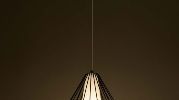 Forma i światło. Stożkowa oprawa ukryta w geometrycznej klatce tworzy charakterystyczny, dekoracyjny rysunek refleksów. To ten rodzaj światła, który robi „wow” już po zmroku – miękko akcentuje fakturę ściany, nadaje głębię i sprawia, że wieczory przy stole stają się bardziej nastrojowe.