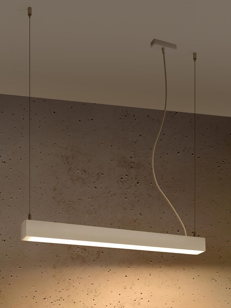 Nowoczesny, geometryczny profil PINNE 67 wpisuje się w język współczesnych aranżacji: jest prosty, harmonijny i pozbawiony zbędnych detali. Biały, matowy kolor rozprasza wizualnie bryłę i nadaje jej lekkości, dzięki czemu lampa równie dobrze wygląda na tle ciepłego drewna, betonu architektonicznego, jak i eleganckiej szarości. Tę estetyczną wszechstronność uzupełnia aluminiowa konstrukcja – materiał odporny na korozję, lekki i wytrzymały, ceniony przez architektów za dokładność krawędzi i trwałość wykończenia.