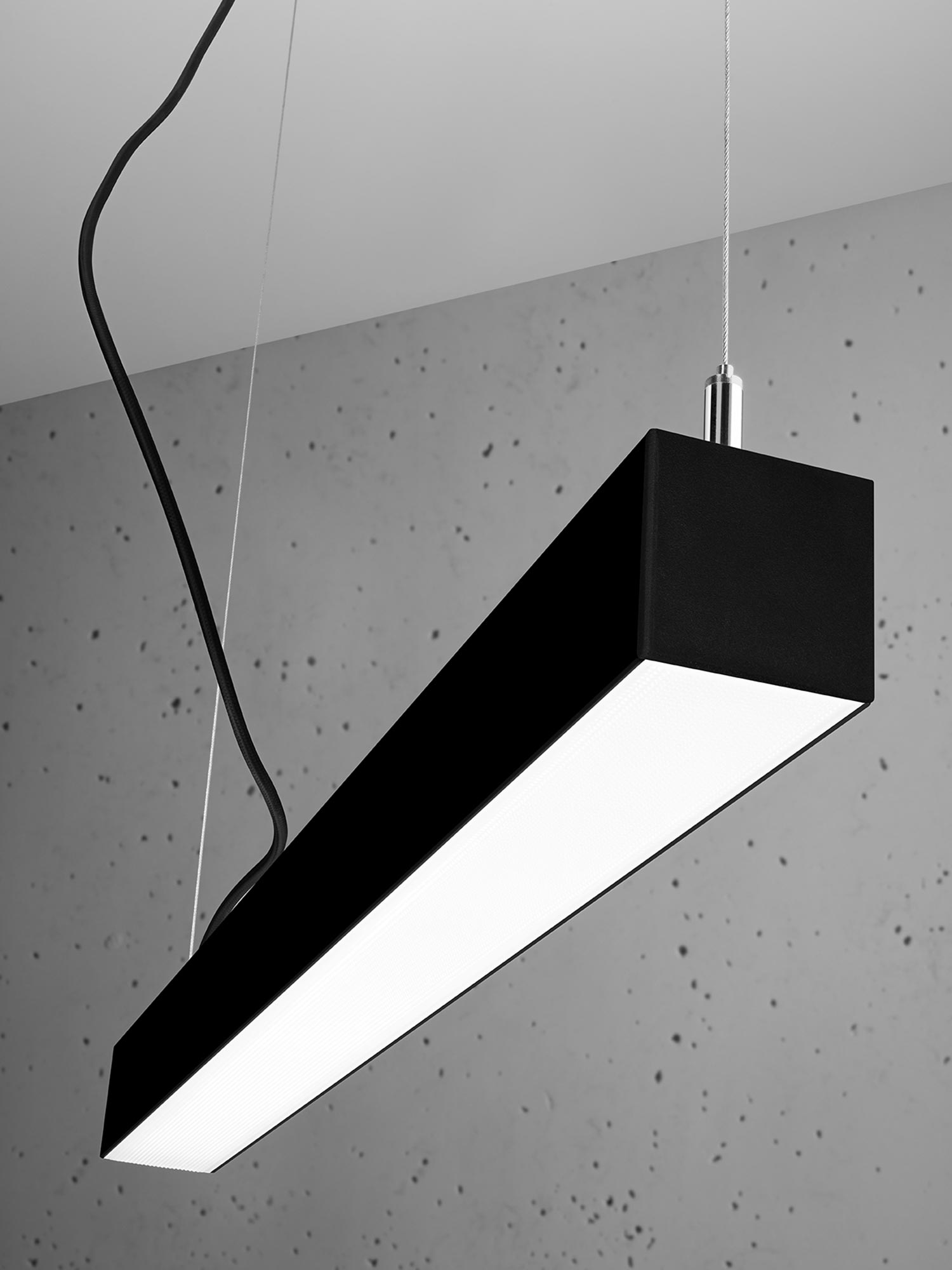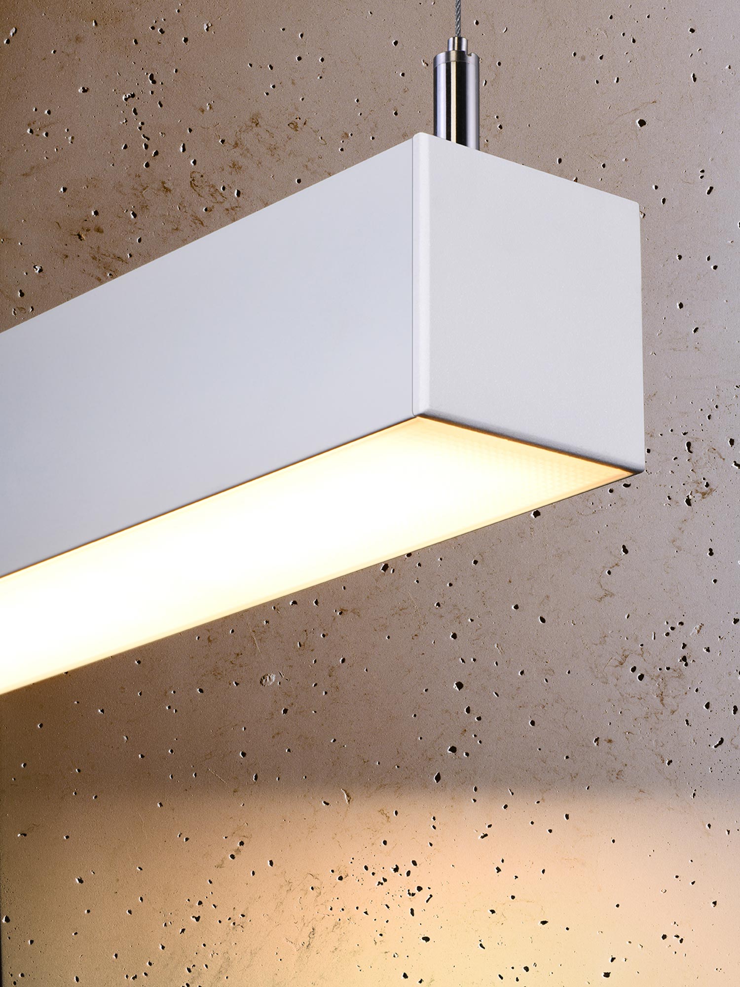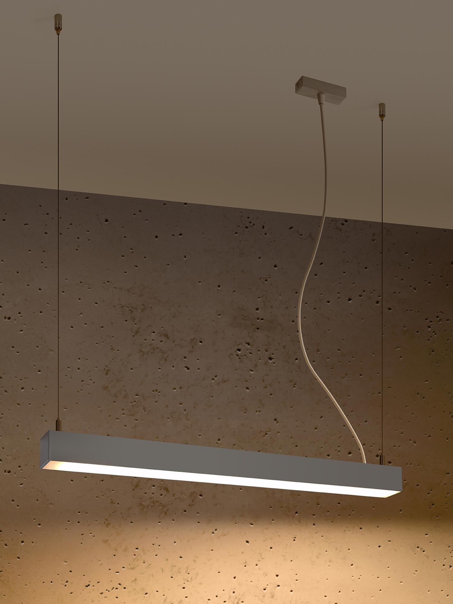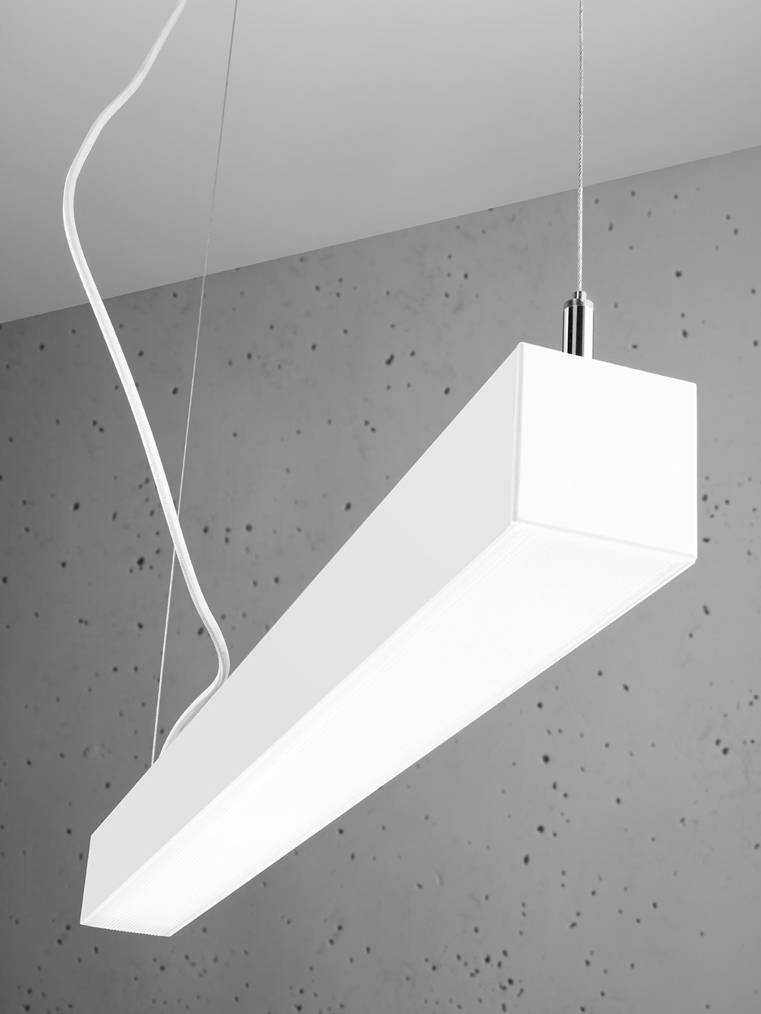 PINNE 67 jest uniwersalna w zastosowaniu: sprawdzi się jako zwis nad stołem czy biurkiem, ale także jako element systemu oświetlenia w korytarzu lub holu. Co więcej, w tej rodzinie dostępne są również odmiany plafon i kinkiet – możesz więc spójnie oświetlić cały dom, biuro lub przestrzeń komercyjną (galeria, urząd, strefa recepcyjna, sala konferencyjna), zachowując jednolity, czysty styl.