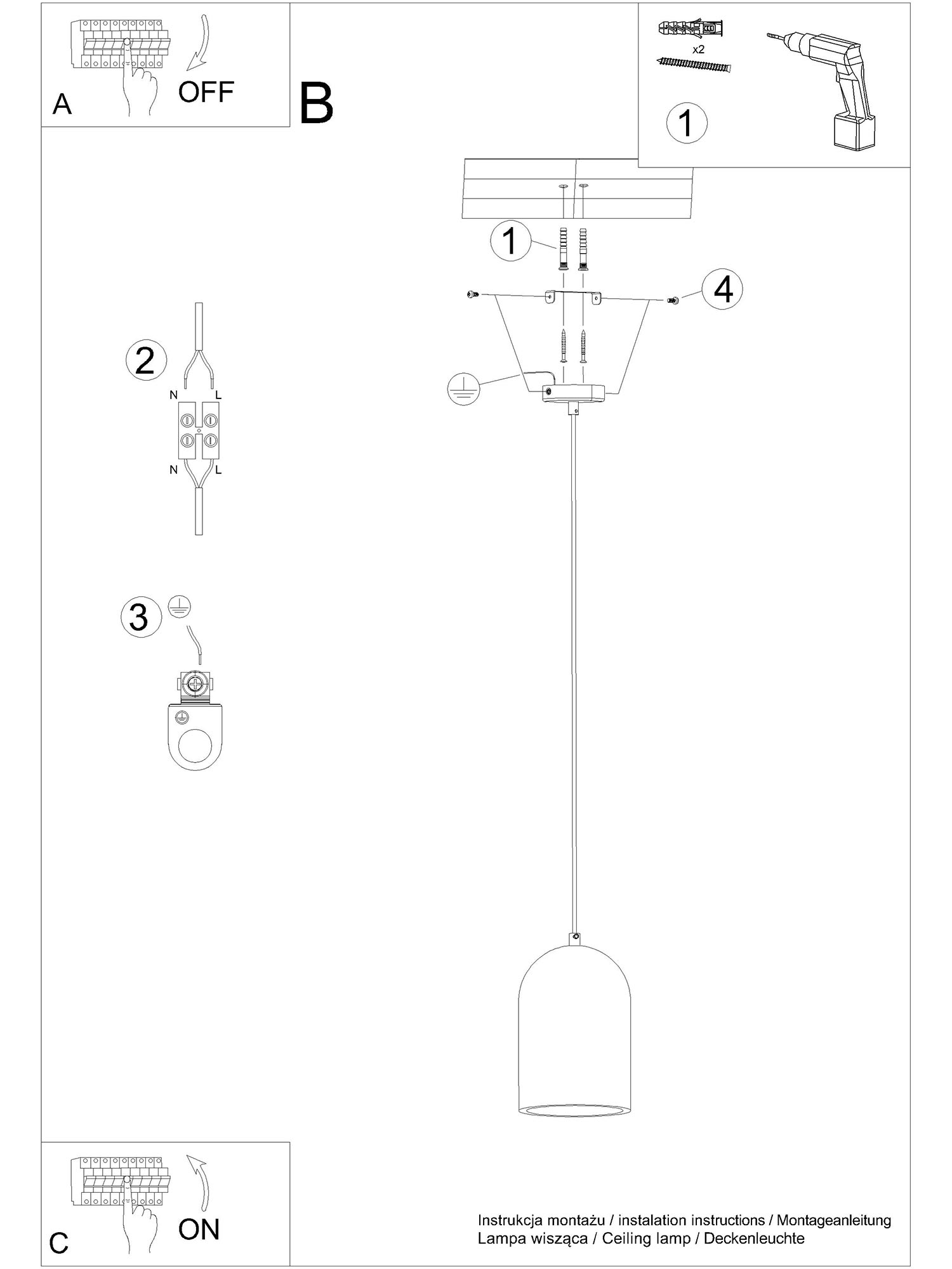 - Źródło światła: Lampa wyposażona w gniazdo E27, przeznaczone dla żarówki LED o maksymalnej mocy 15W, ~230V, 50Hz, IP20, klasa ochronności I.