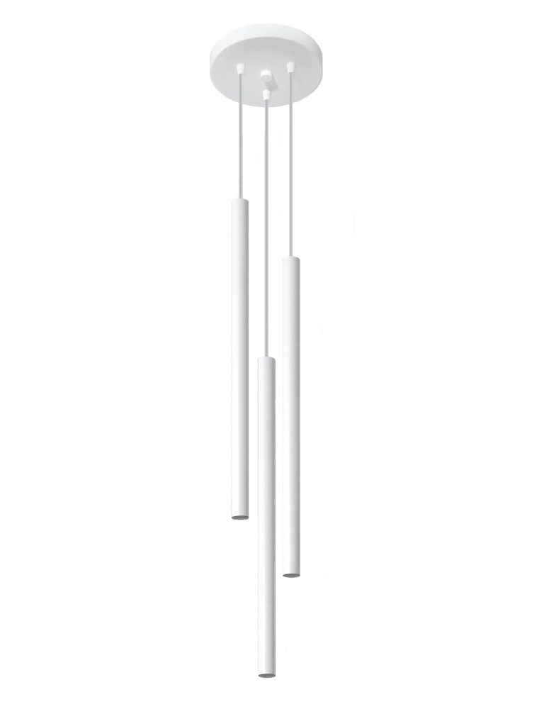 PERSEO 3P – Trójpunktowa biała lampa wisząca ze stali: lekkość świecy, wygoda nowoczesnego światła
