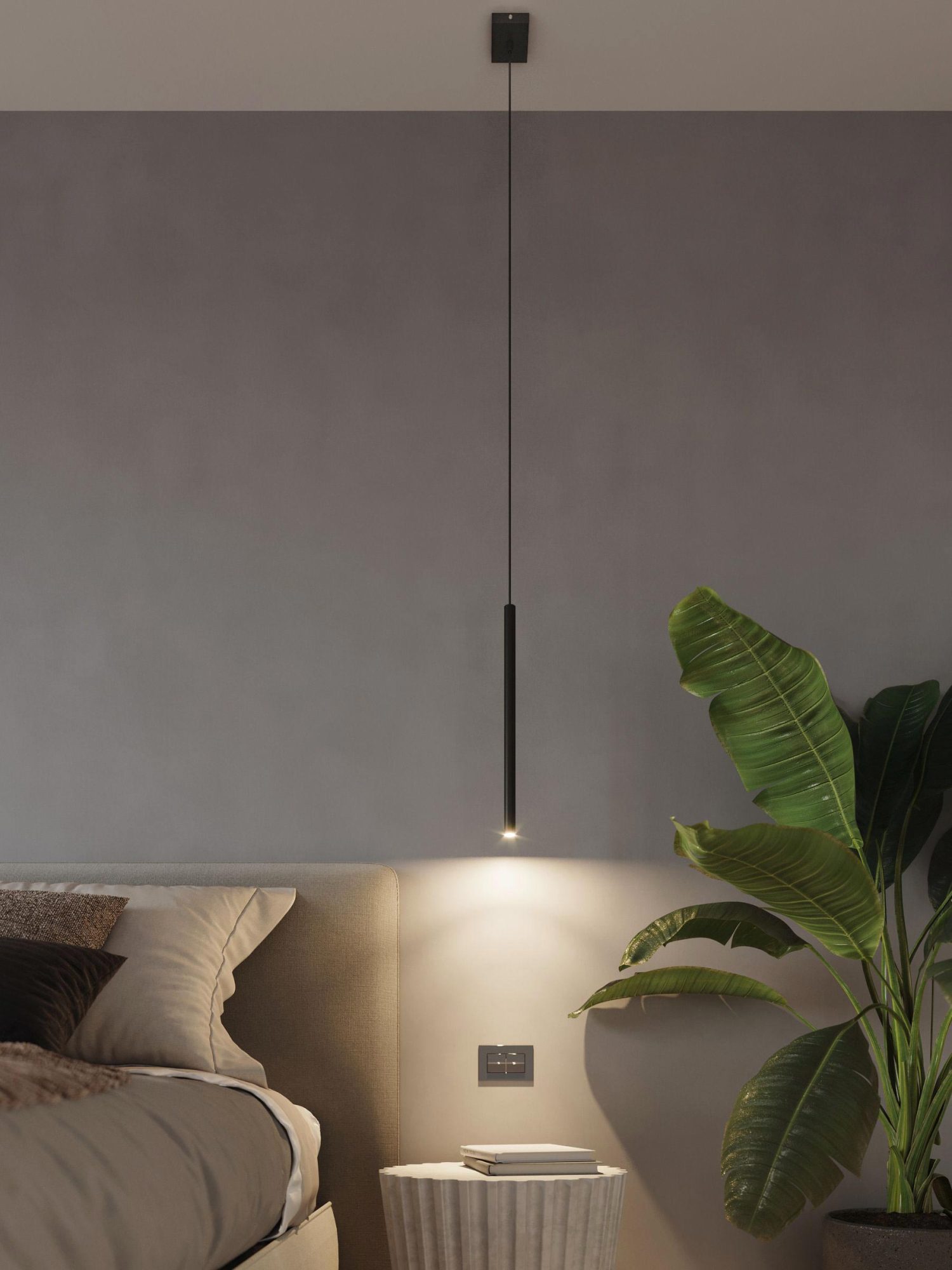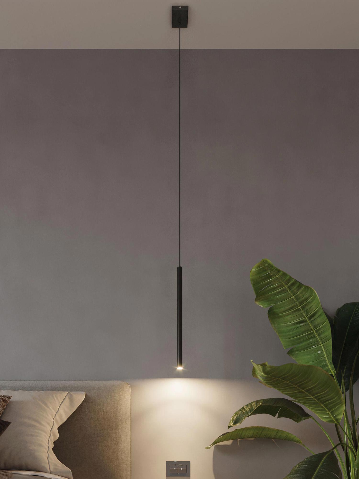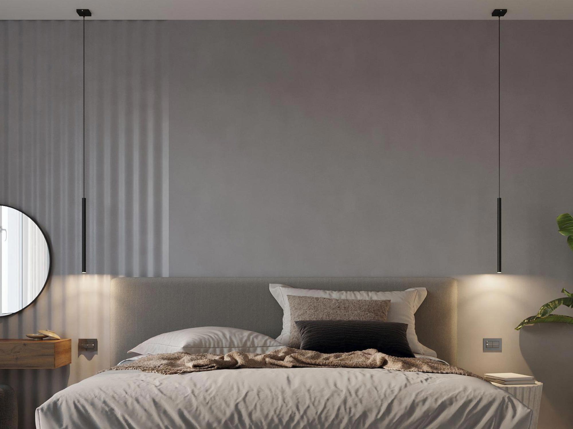 PERSEO 3P świetnie współpracuje z jasnymi drewnami, beżami i złamaną bielą, ale równie efektownie kontrastuje z grafitem czy antracytem. Jeśli lubisz dodatki w mosiądzu lub czerni – ta lampa je „unie” i subtelnie zrównoważy, zachowując czystość kompozycji.