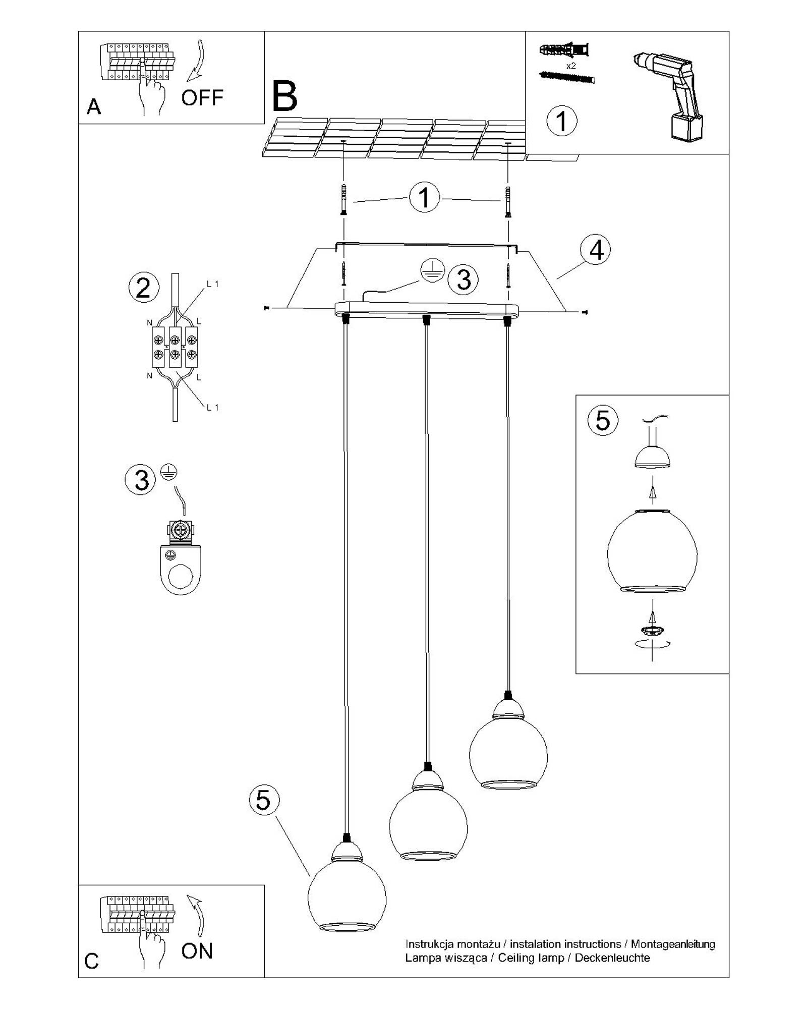 Źródło światła: E27, 3x60W, 3x15W LED, 50-60Hz, ~220-230V, IP20, klasa ochronności I
