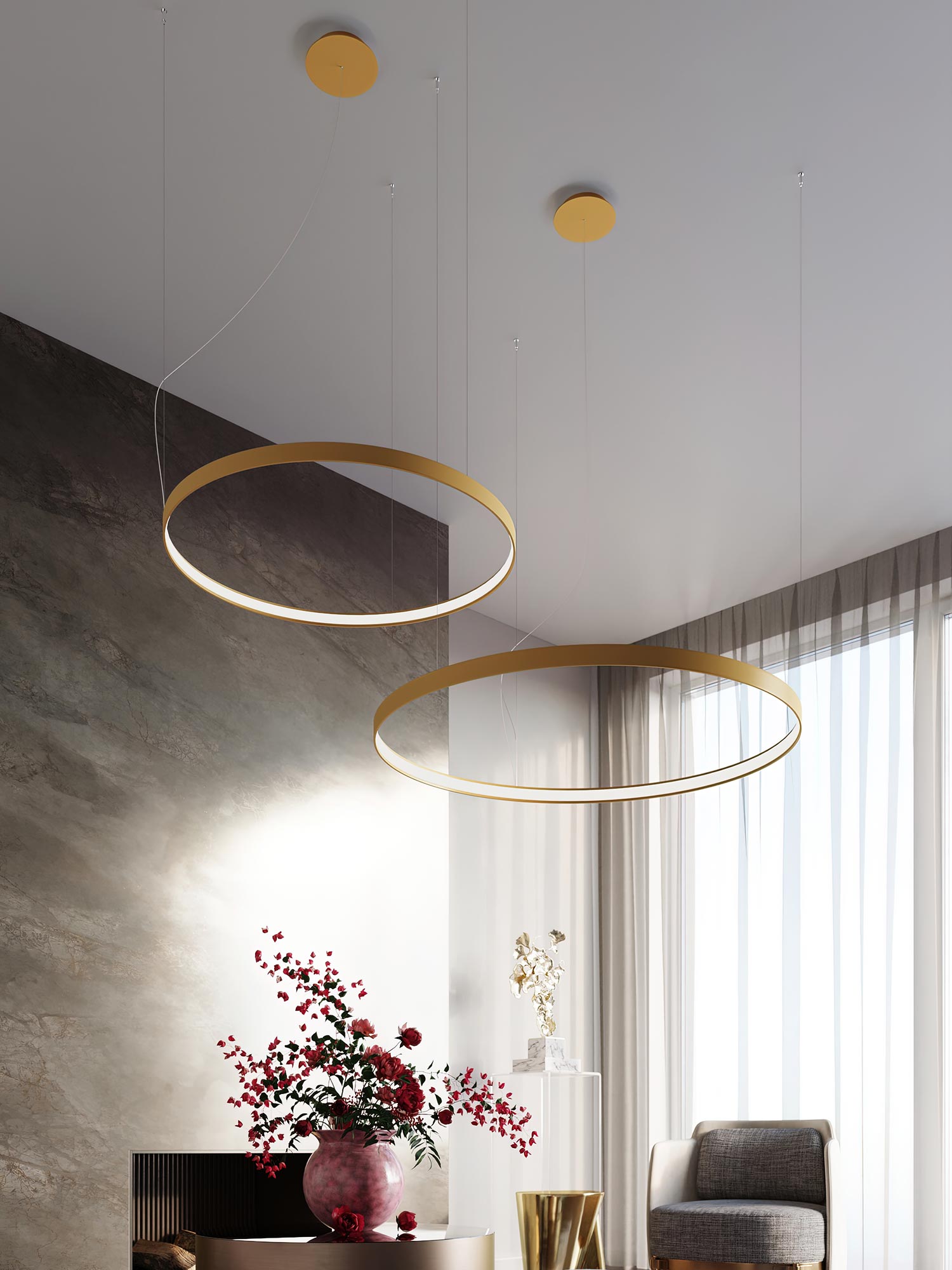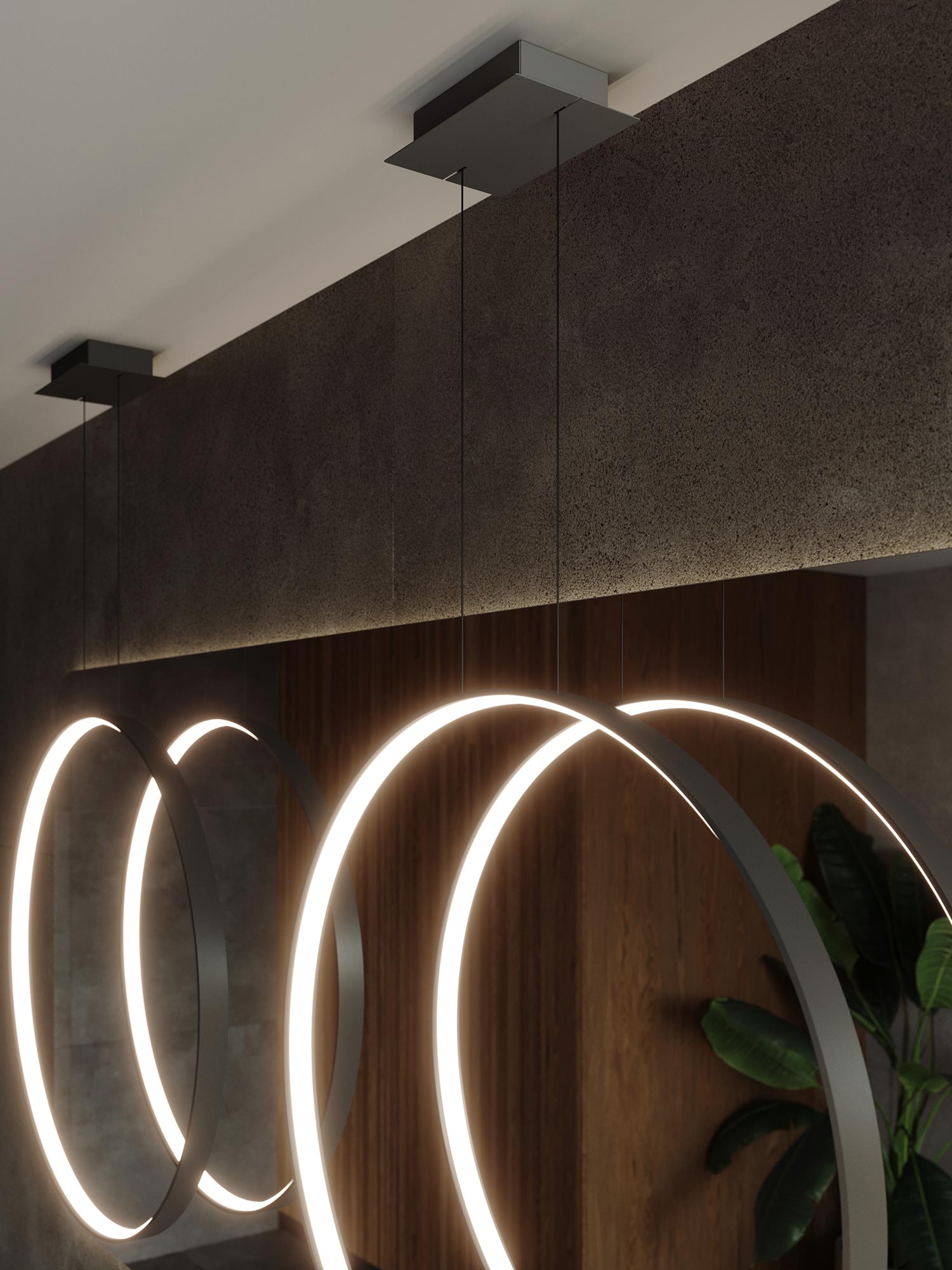 Wolność aranżacji. RADIX 78 świetnie działa jako oprawa liniowa nad stołem, biurkiem czy wyspą. W wysokich holach i klatkach schodowych zachwyca jako forma pionowa, tworząc rzeźbiarską instalację bez nadmiaru dekoracji. Możesz łączyć kilka opraw w szeregu lub kaskadowo, uzyskując spójny, nowoczesny efekt. W rodzinie RADIX znajdziesz też warianty plafonowe – dzięki temu zachowasz jedną linię stylistyczną w całym projekcie.