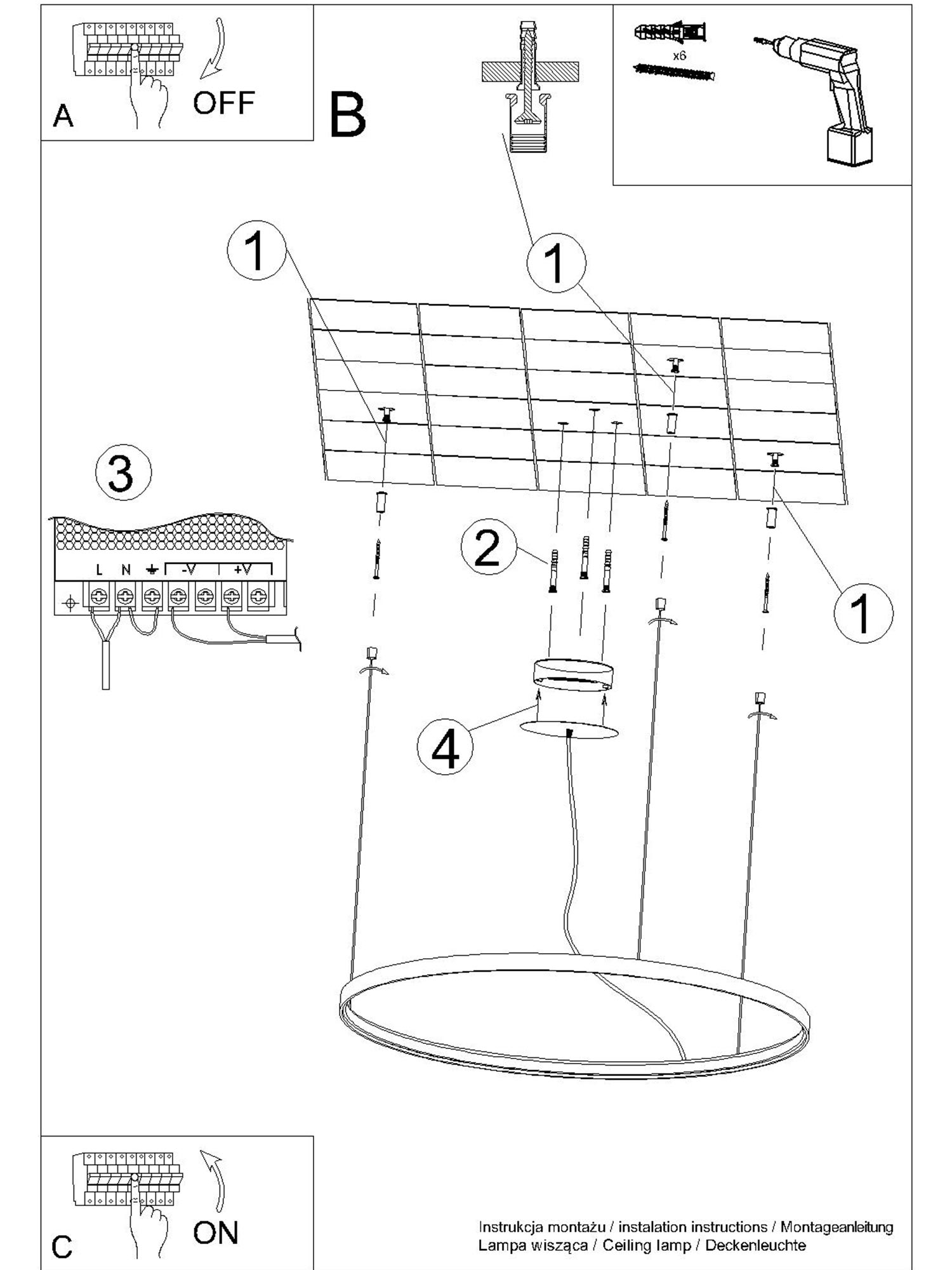 - Źródło światła: LED, 50W, 5520lm, 3000K/4000K, CRI90, 50-60Hz, ~220-230V