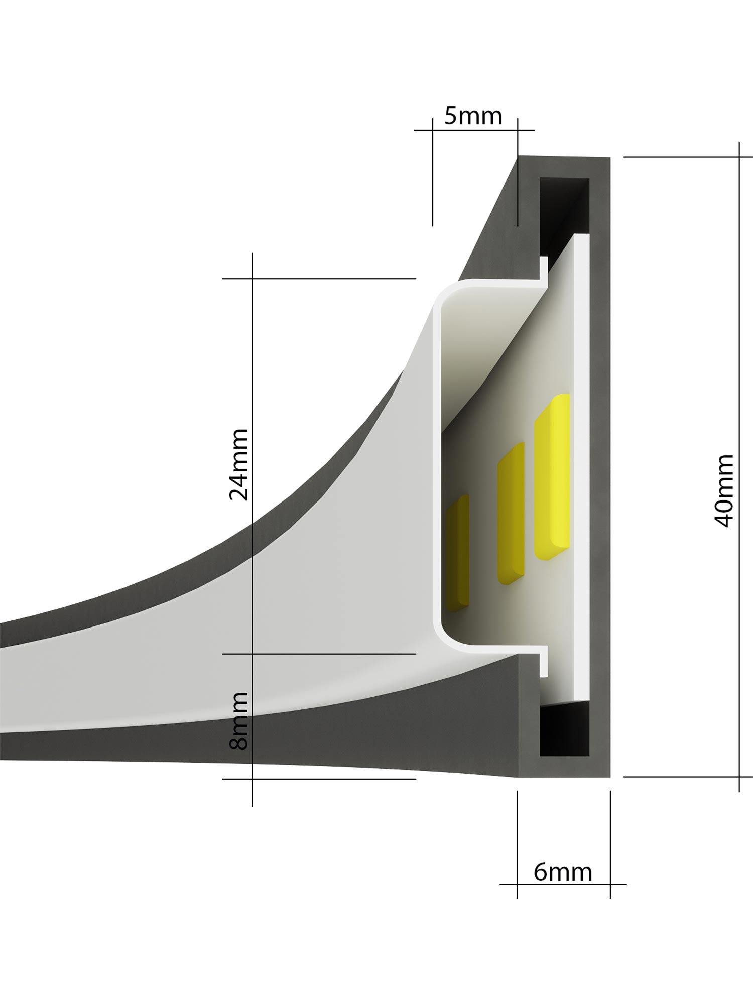 - Wymiary profilu: wysokość 4 cm, szerokość 0,8 cm