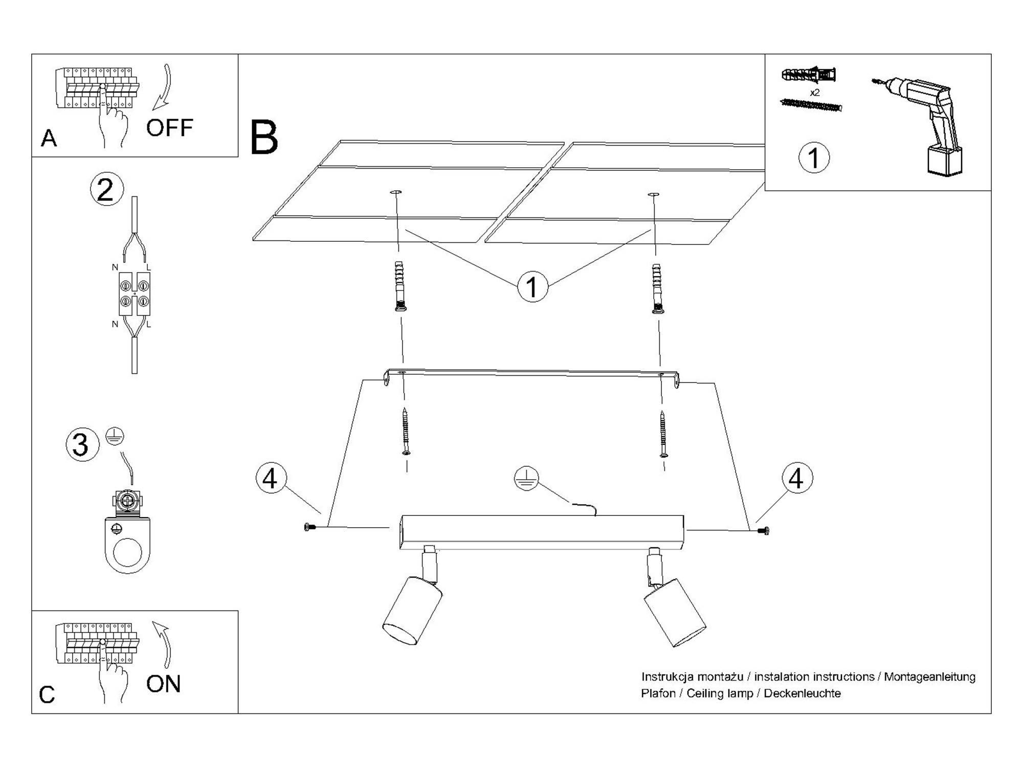 Źródło światła: GU10, 2x max 10W LED, ~230V, 50Hz, IP20, klasa ochronności I