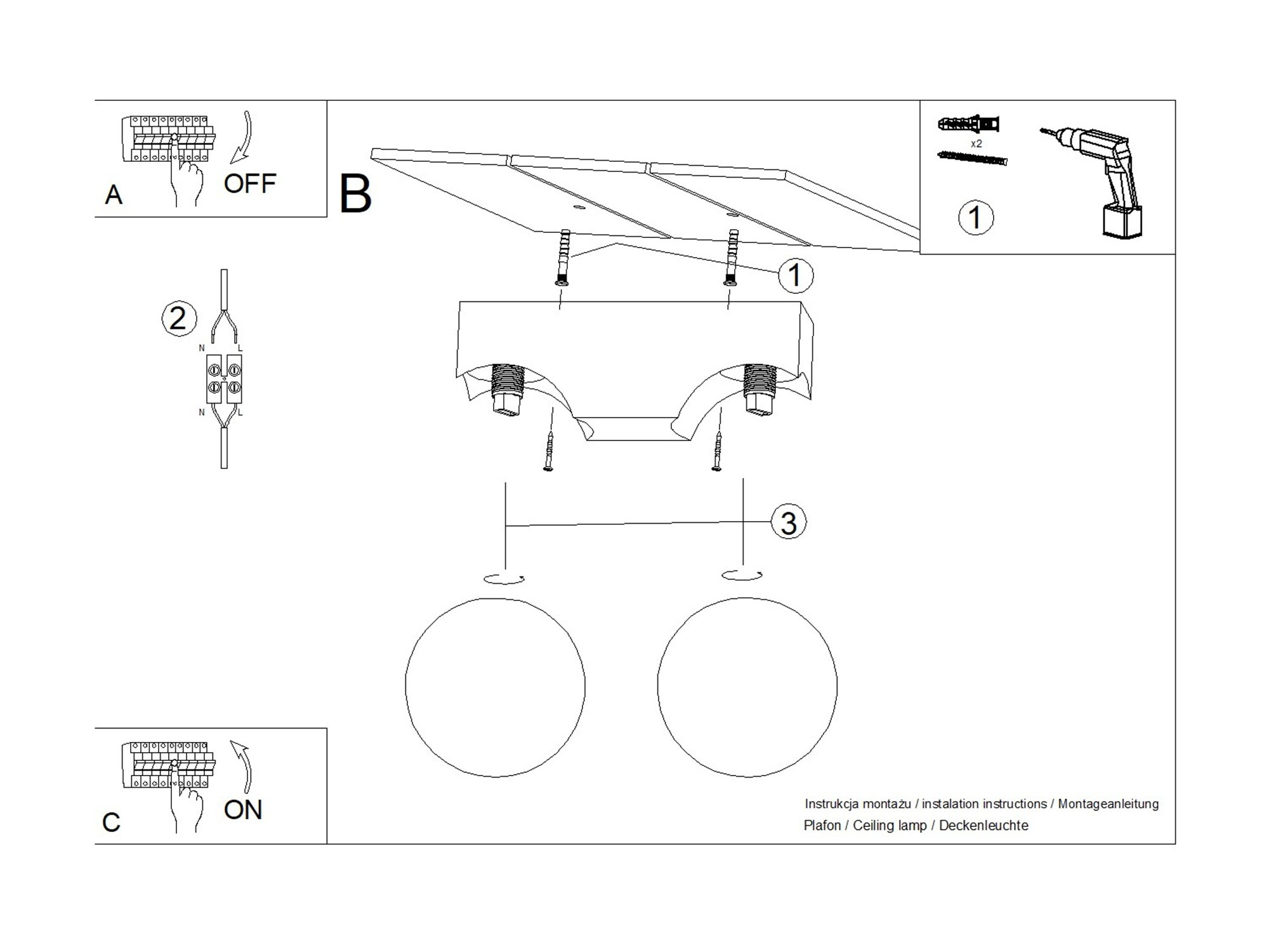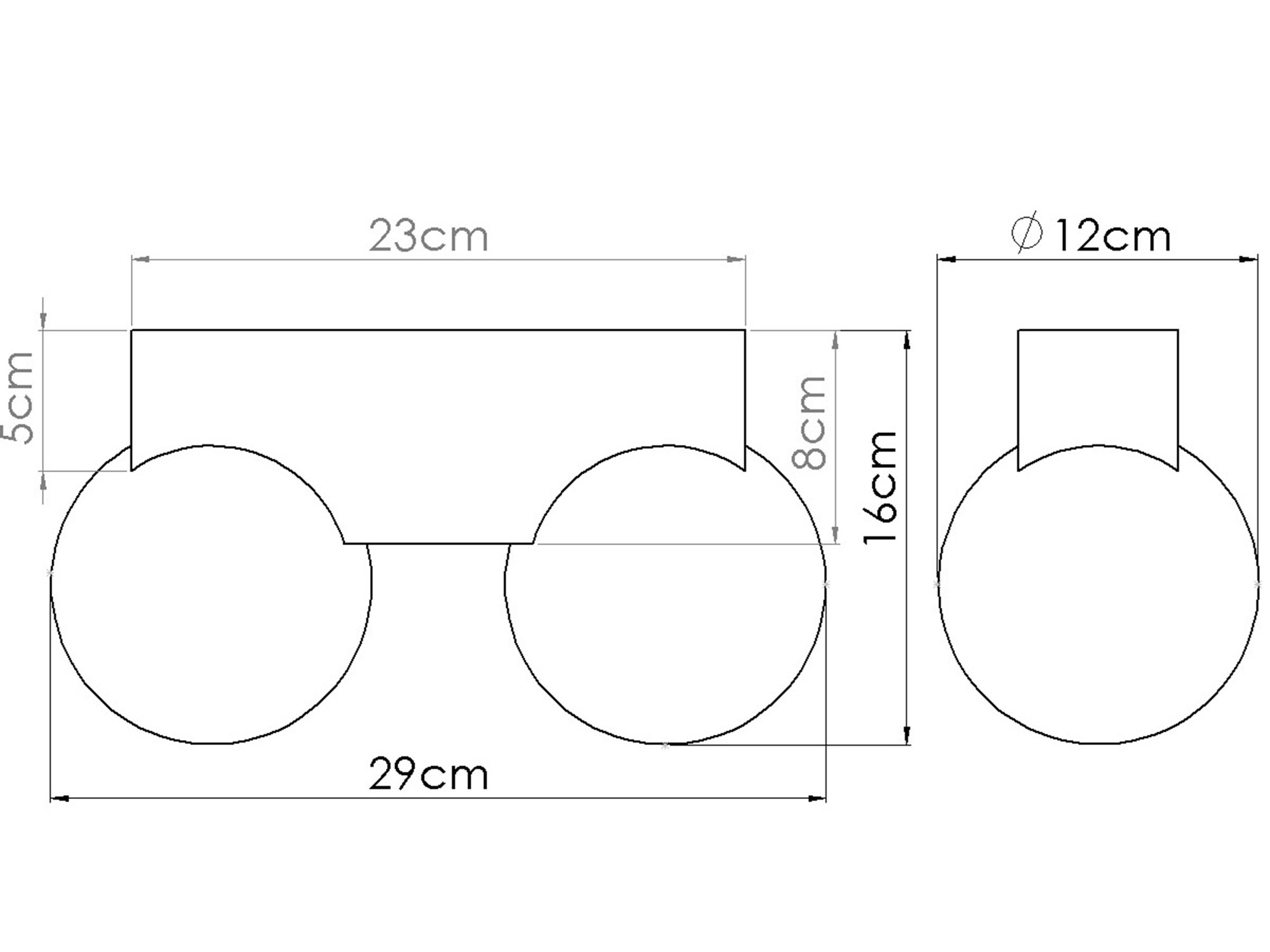 Plafon posiada kompaktowe wymiary: długość 29 cm, szerokość 12 cm i wysokość 16 cm. Dzięki temu świetnie sprawdzi się w pomieszczeniach o różnej wielkości – od małych sypialni po przestronne salony. Podwójne źródło światła pozwala na lepsze oświetlenie wnętrza, zachowując przy tym subtelny i elegancki wygląd.