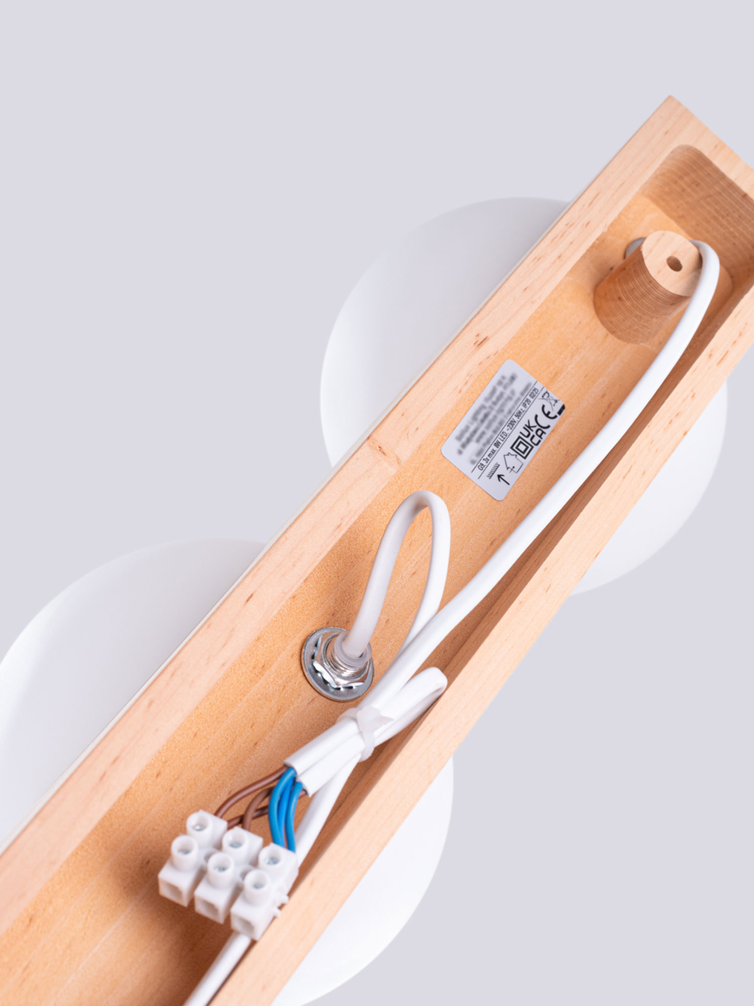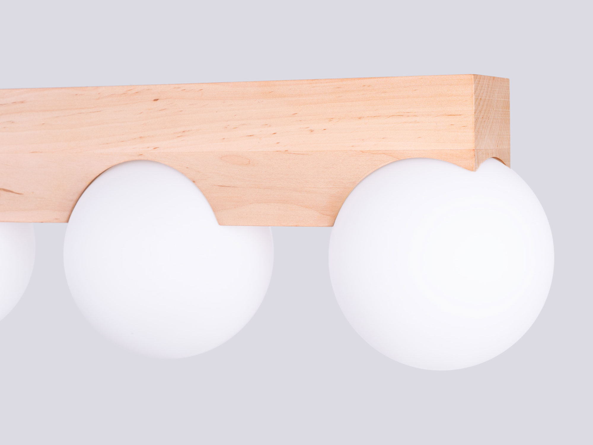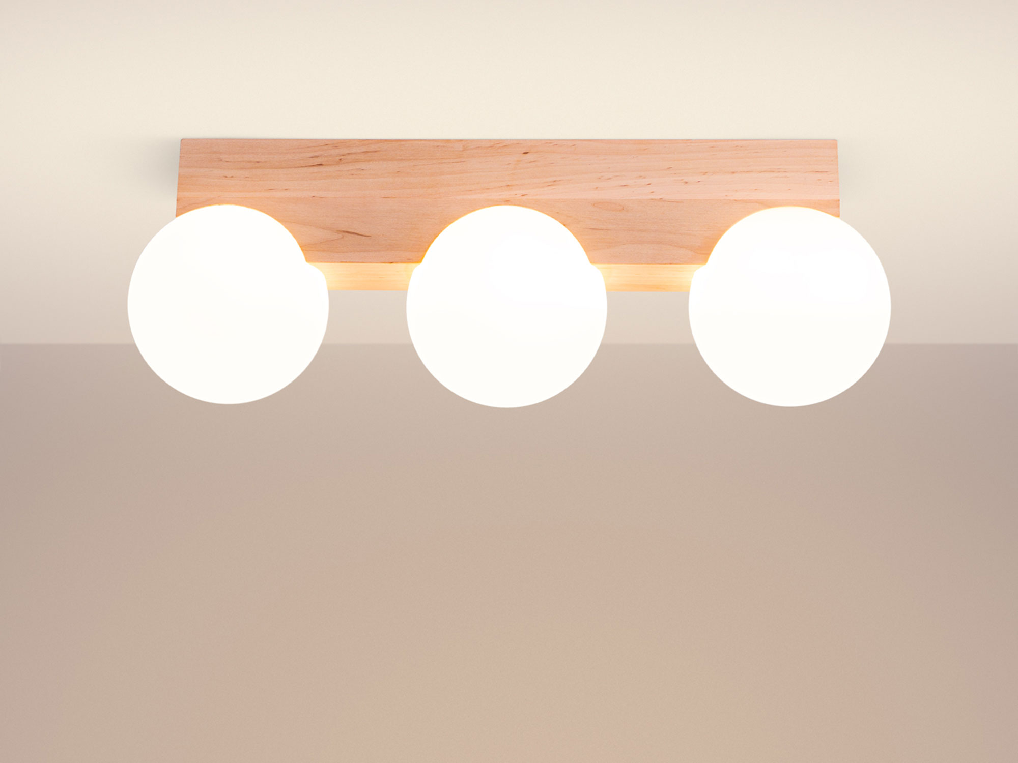 Model BOLDO 3 to propozycja dla osób, które cenią design inspirowany naturą. Jego konstrukcja łączy w sobie trwałe drewno i eleganckie szkło, dzięki czemu plafon jest jednocześnie nowoczesny i ponadczasowy. Naturalny kolor drewna doskonale komponuje się z bielą kloszy, wprowadzając do wnętrza świeżość i równowagę.