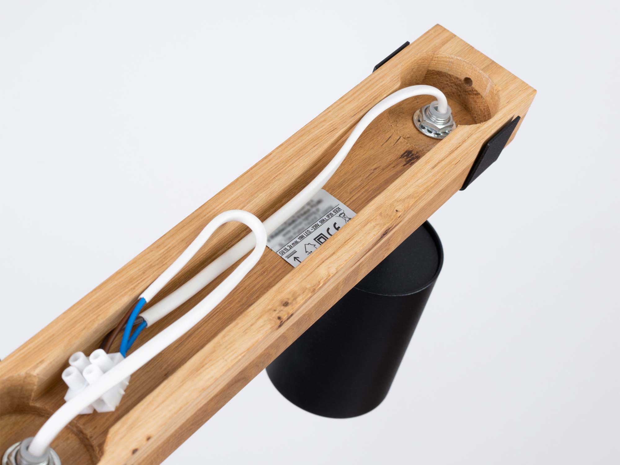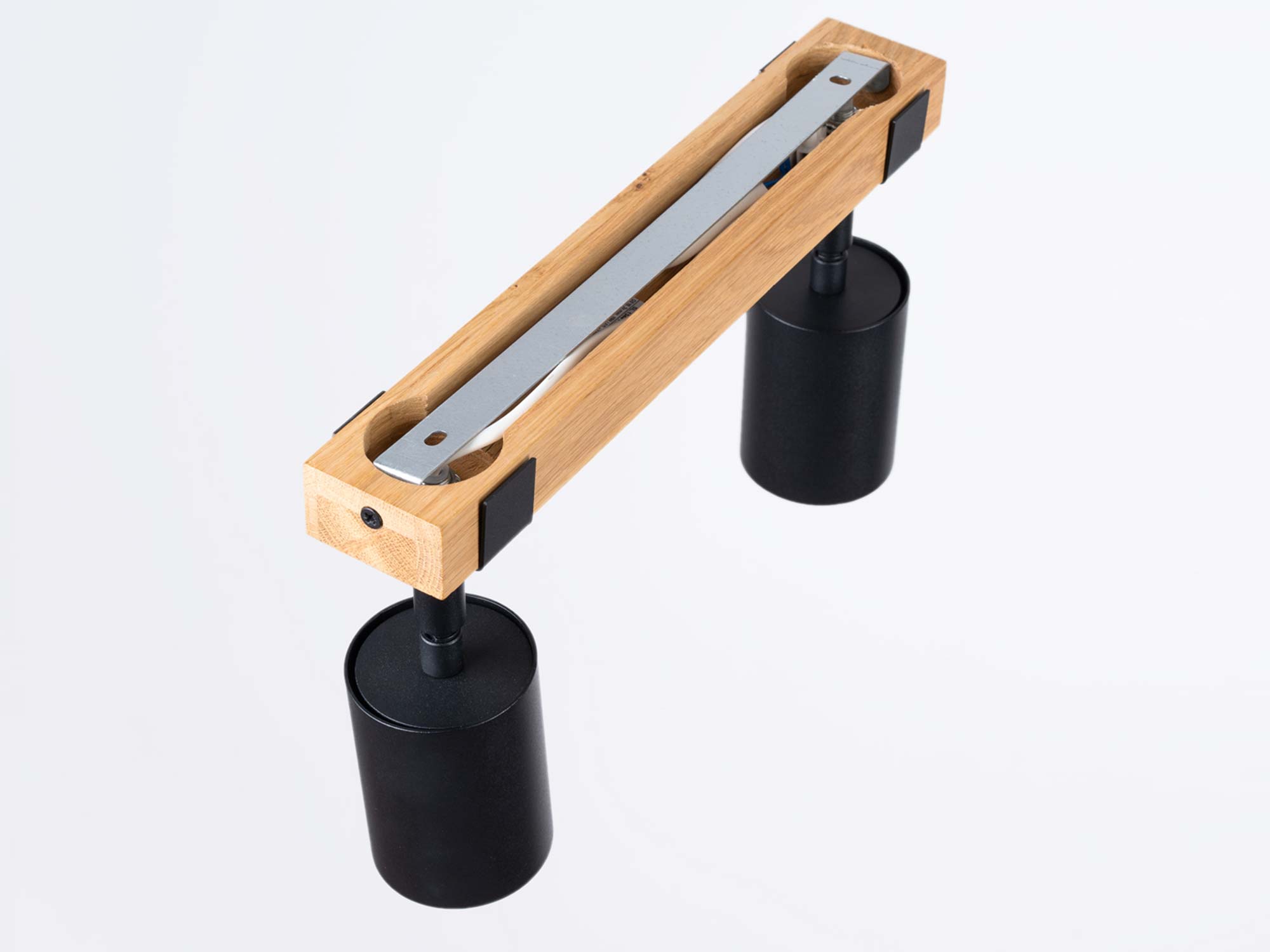 Minimalistyczny design lampy – prostokątna podsufitka z czarnej stali, ozdobiona drewnianymi detalami – nadaje jej ponadczasowy charakter. Dzięki temu świetnie komponuje się zarówno z aranżacjami industrialnymi, jak i nowoczesnymi czy skandynawskimi. Czarny kolor dodaje elegancji i kontrastu, a drewno ociepla całość, sprawiając, że plafon pasuje do wnętrz o różnych odcieniach i fakturach.