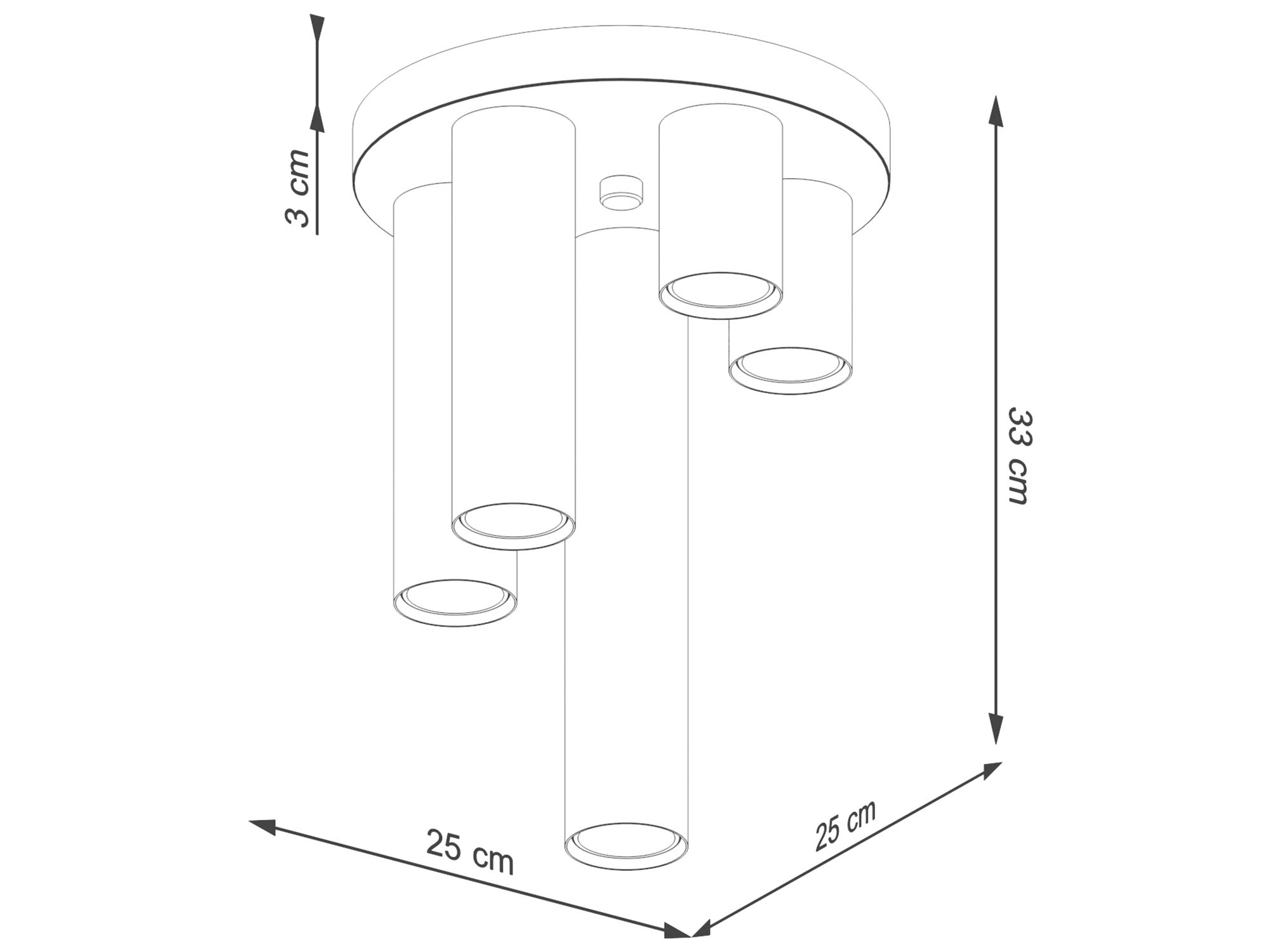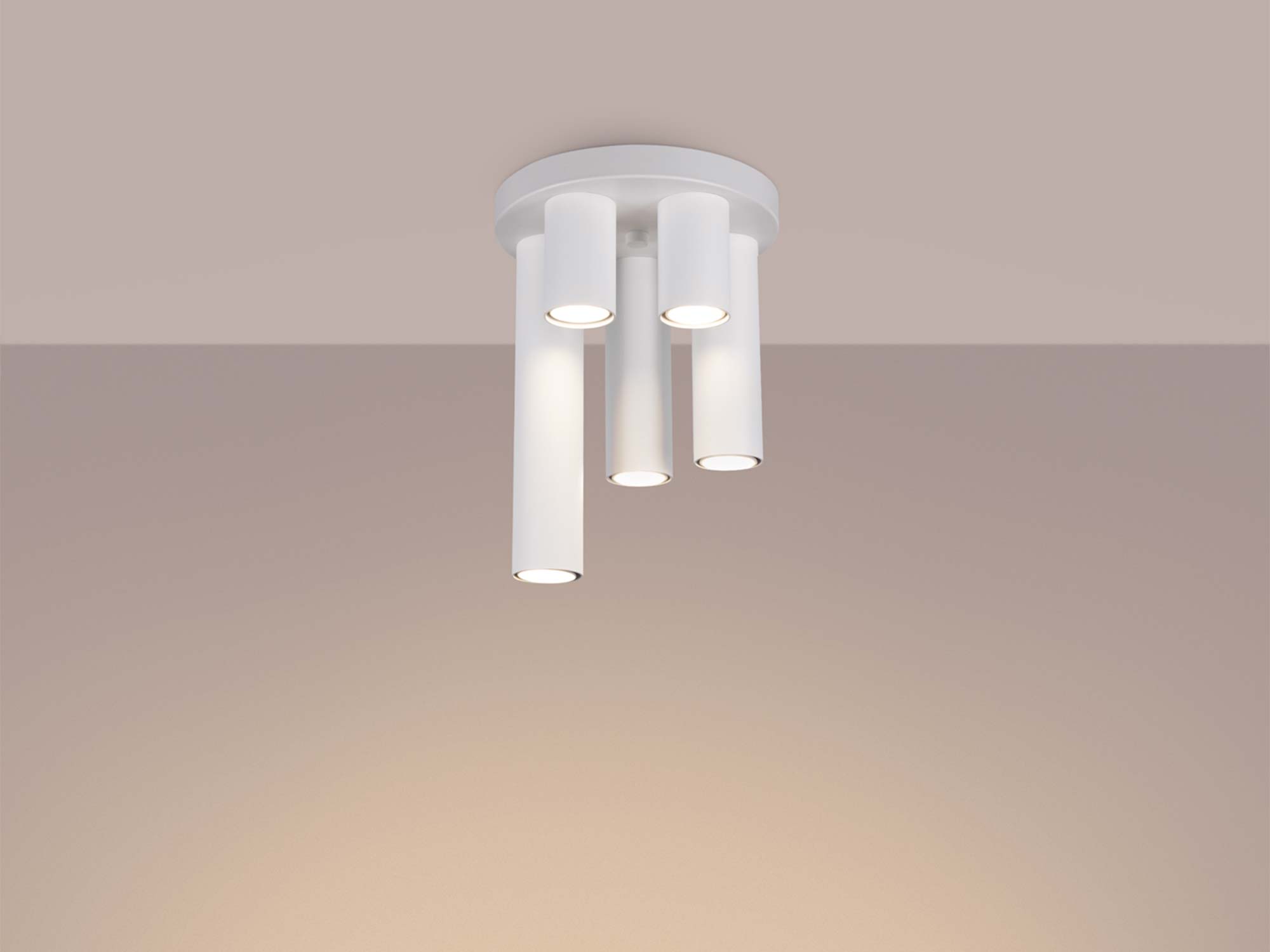 Pięć źródeł światła GU10 (każde do 10W LED) zapewnia intensywne, równomierne oświetlenie. Dzięki temu plafon świetnie sprawdza się w przestrzeniach, w których liczy się zarówno estetyka, jak i komfort użytkowania – od salonu, przez jadalnię, aż po sypialnię czy biuro.