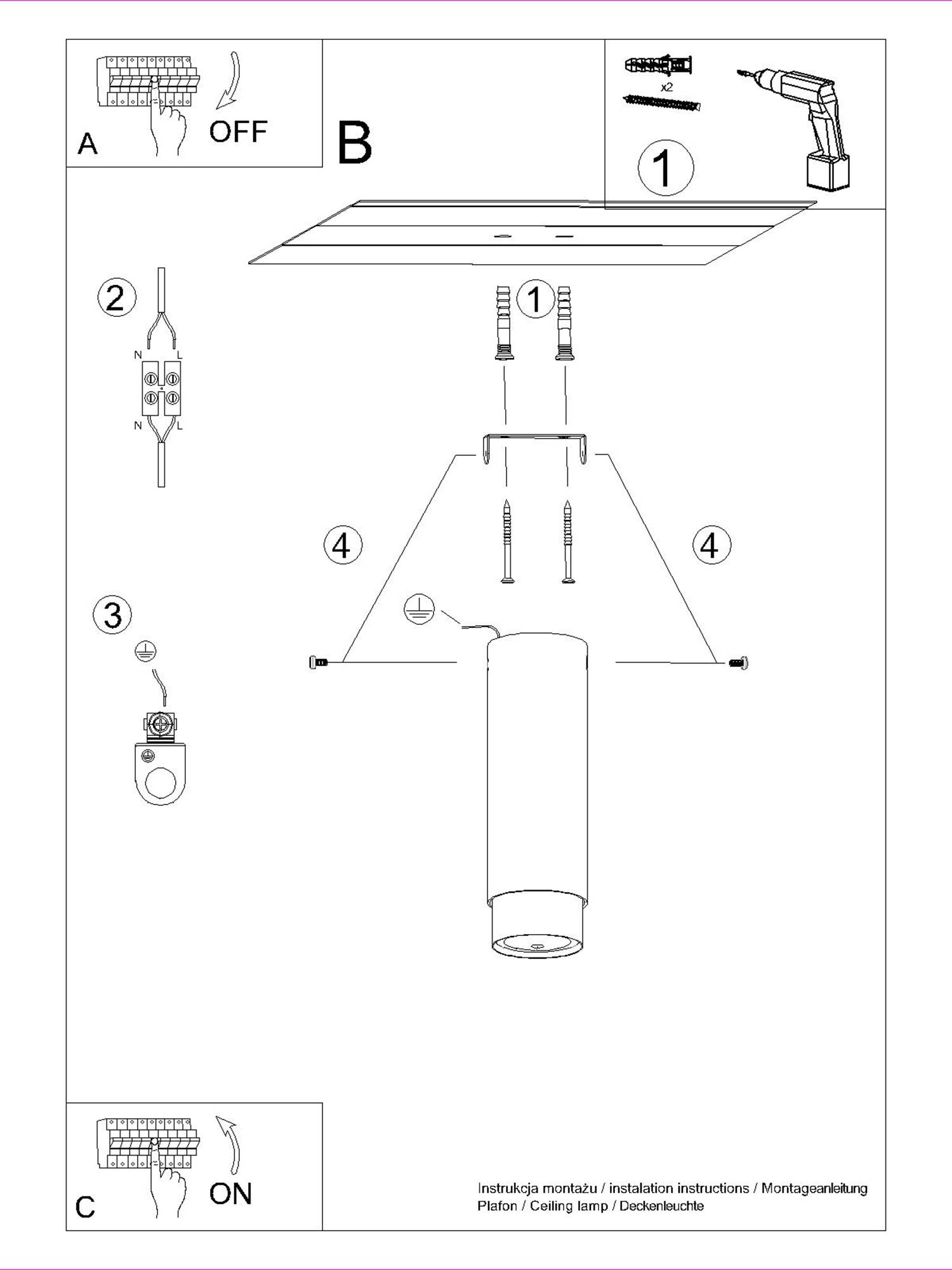 Źródło światła: GU10, 1x max 10W LED, ~230V, 50Hz, IP20, klasa ochronności I