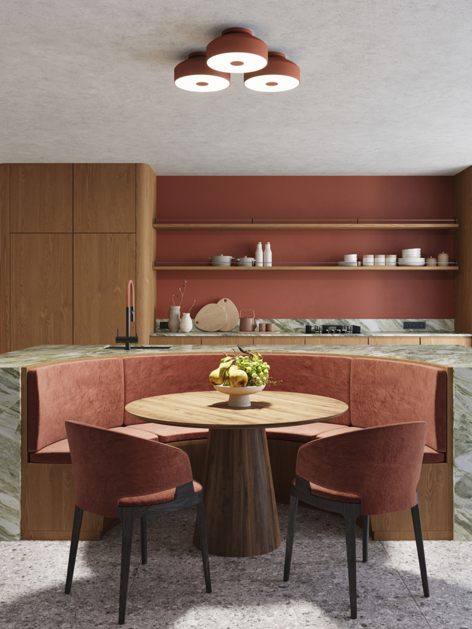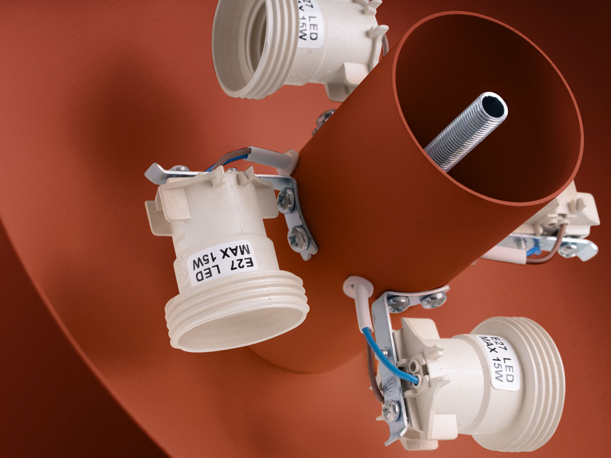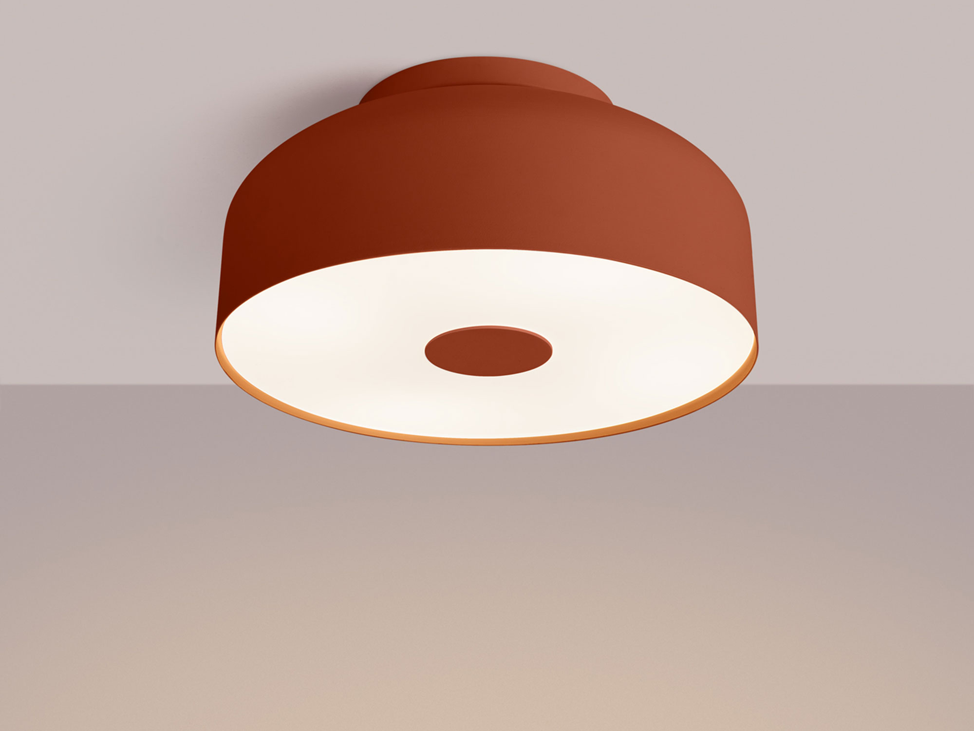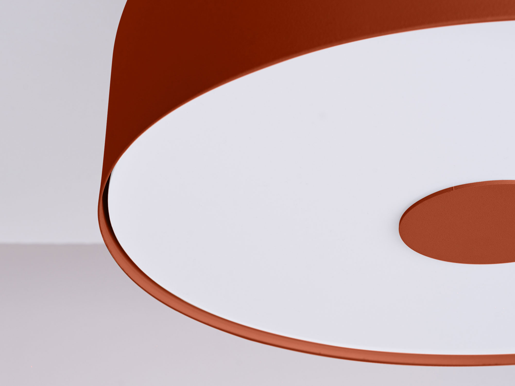Plafon OMIRA ochra czerwona to nie tylko źródło światła, ale przede wszystkim element dekoracyjny. Wykonany z wysokiej jakości stali i PVC, łączy w sobie trwałość oraz łatwość utrzymania w czystości. Minimalistyczna, geometryczna forma w połączeniu z intensywną barwą tworzy efekt, który przyciąga spojrzenia i dodaje wnętrzom charakteru.