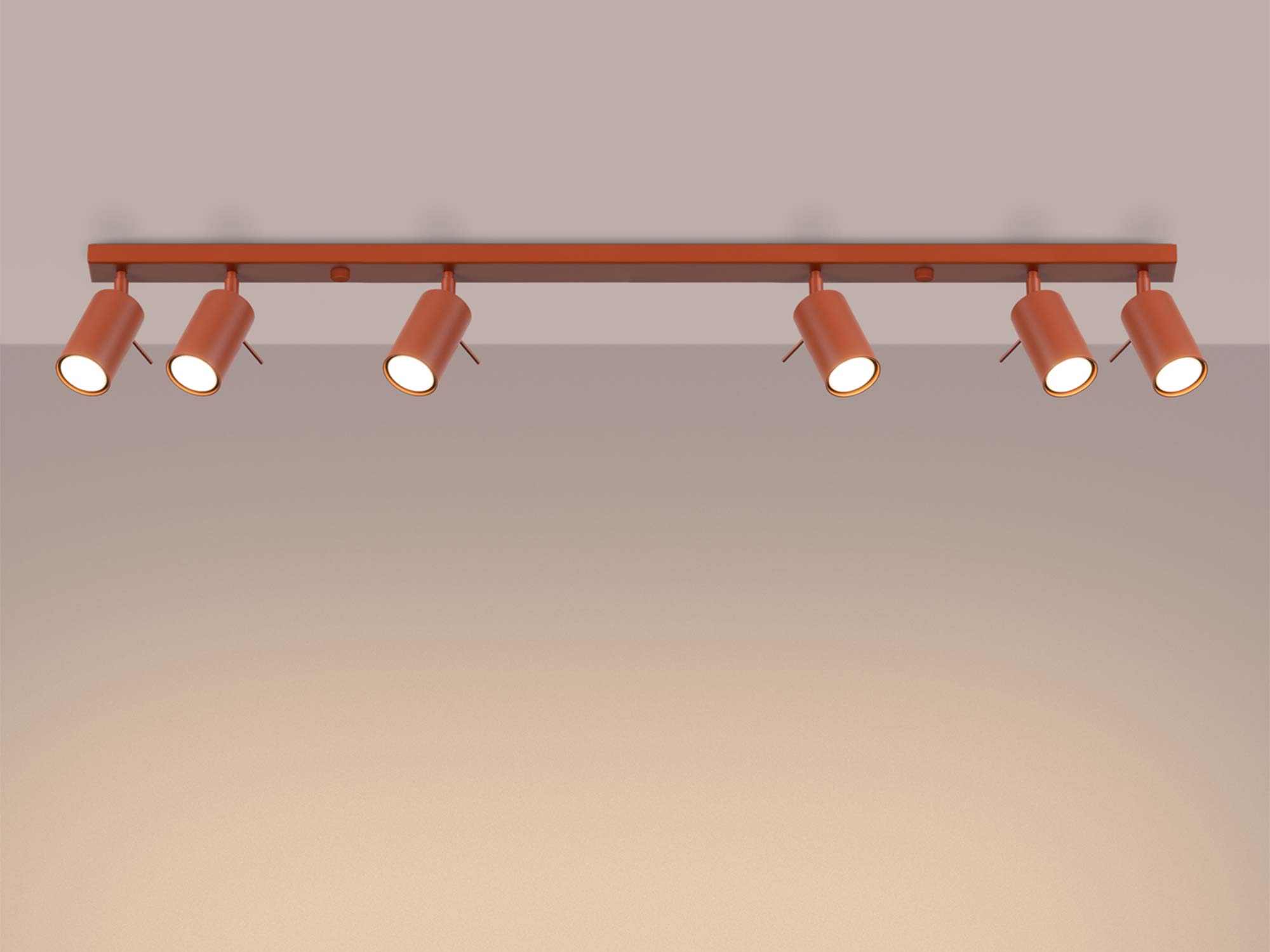 Plafon RINTO 6L w intensywnym odcieniu ochry czerwonej to propozycja dla osób, które pragną połączyć odważny design z funkcjonalnością. Dzięki sześciu punktom świetlnym lampa doskonale doświetla przestrzeń, tworząc przy tym efektowną dekorację sufitu. To rozwiązanie, które nie tylko rozjaśnia wnętrze, ale także podkreśla jego charakter.