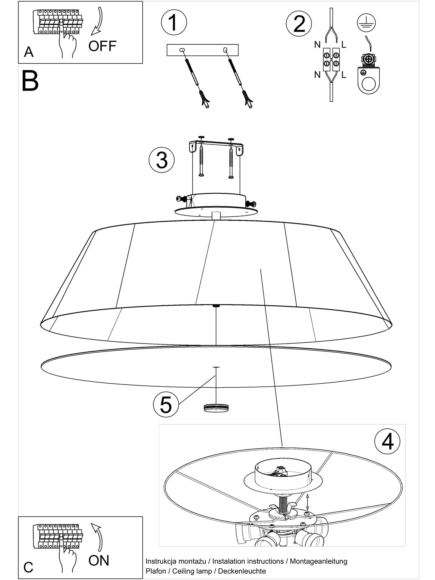 - Źródło światła: E27, 5x60W, 5x15W LED, 50-60Hz, ~220-230V, IP20, klasa ochronności I