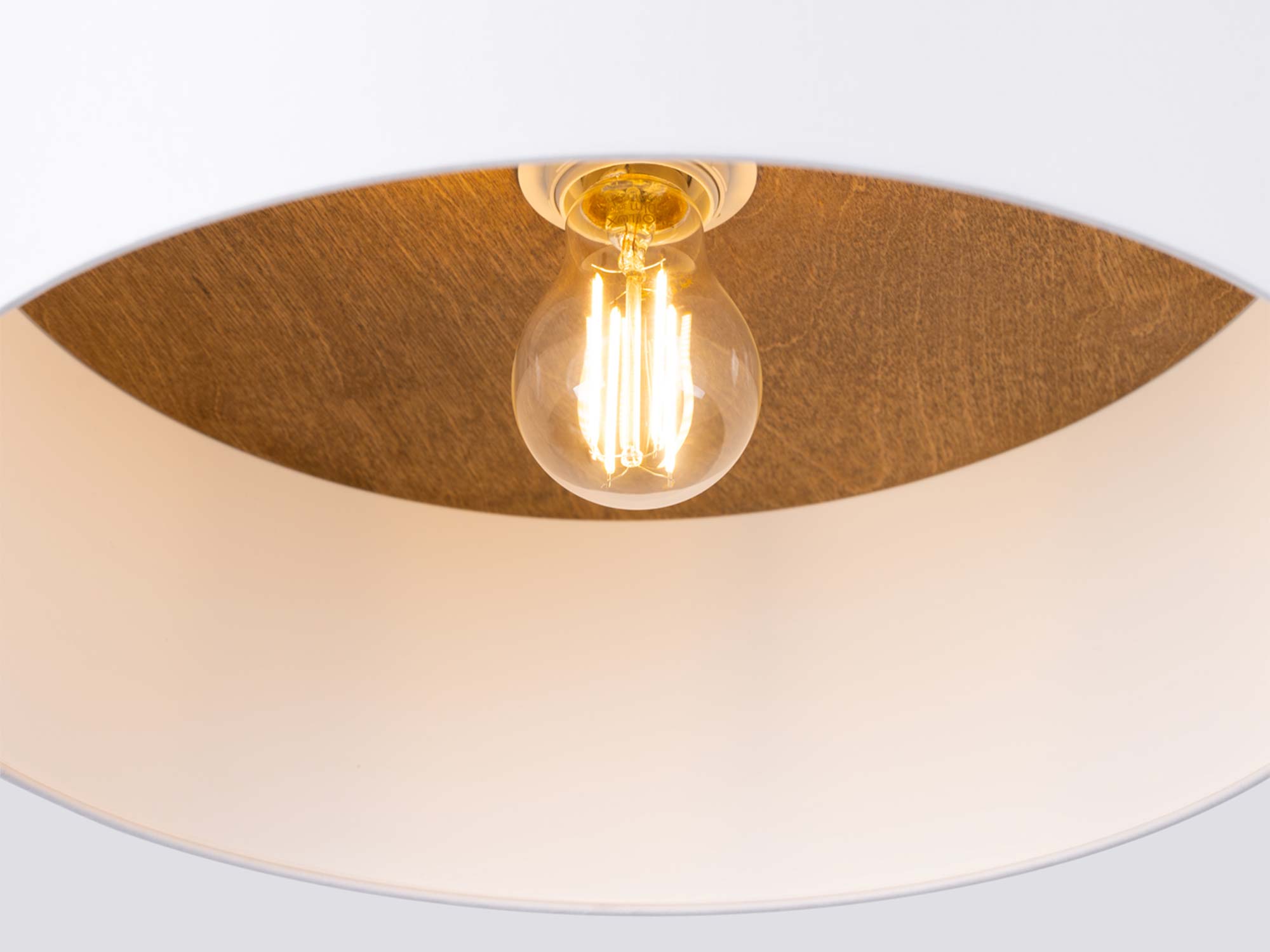 • Ciepła atmosfera – jasny klosz równomiernie rozprasza światło, tworząc przyjemny nastrój.