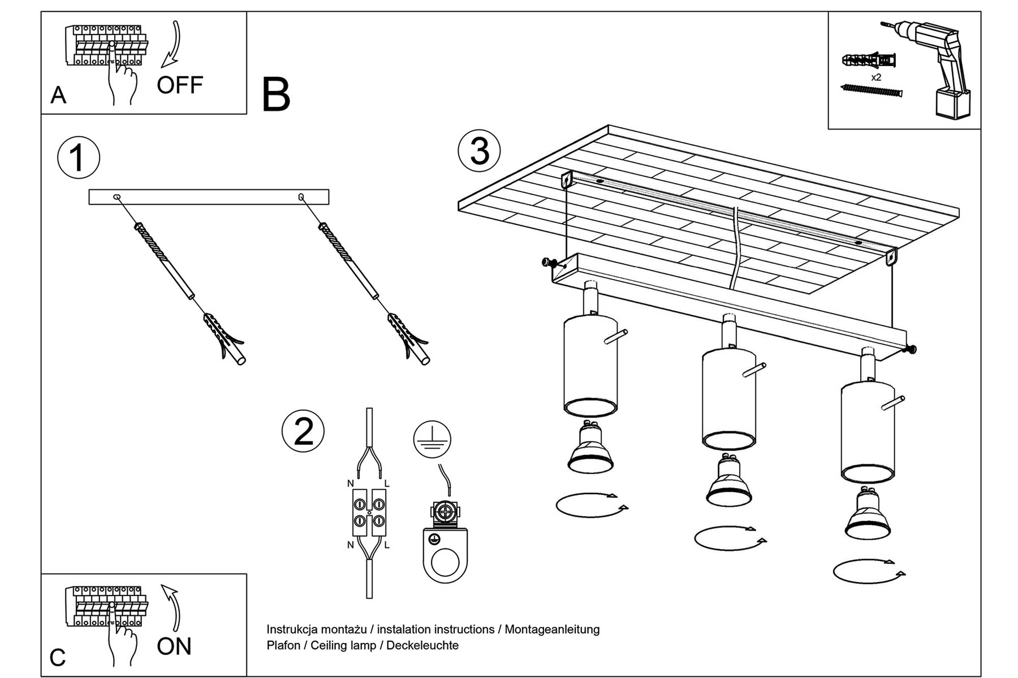 Źródło światła: GU10, 3x40W, 3x12W LED, 50-60Hz, ~220-230V, IP20, klasa ochronności I