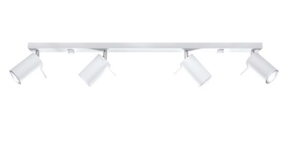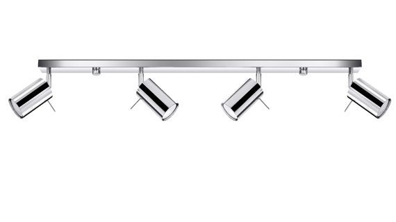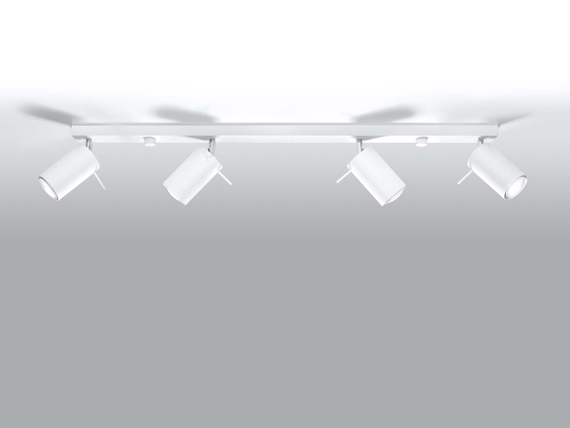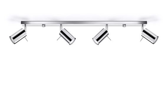 Światło skrojone do zadania. Oprawa współpracuje ze źródłami GU10 (do 40 W). Wybierając LED, decydujesz o barwie i kącie świecenia: 2700–3000 K dla nastroju, 4000 K do pracy; 36° do akcentu, 60° do oświetlenia ogólnego. Cztery głowice pracują niezależnie, więc jedną oprawą tworzyć możesz kilka funkcjonalnych stref – bez konieczności instalowania dodatkowych lamp.