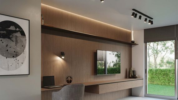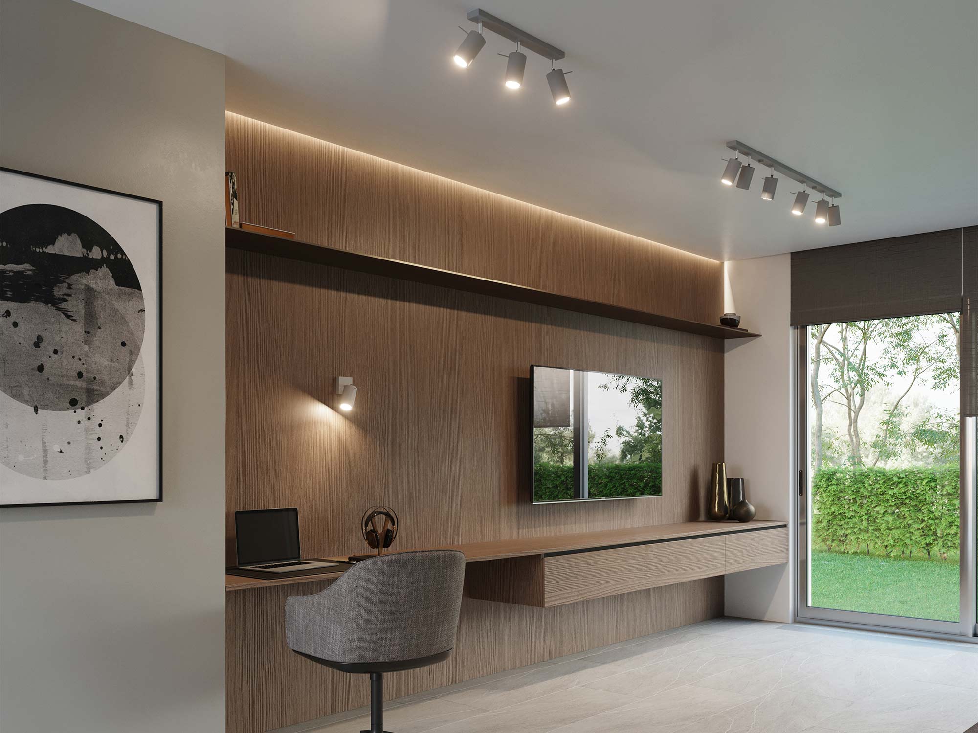 Zobacz, jak będzie wyglądać Twoja sypialnia marzeń: dwa reflektory tworzą miękki nastrój przy łóżku, trzeci akcentuje obraz, czwarty doświetla toaletkę. Rano zmieniasz scenę – chłodniejsza barwa nad biurkiem wspiera skupienie, wieczorem wracasz do ciepła i relaksu. Naturalnie, intuicyjnie, po Waszemu.
