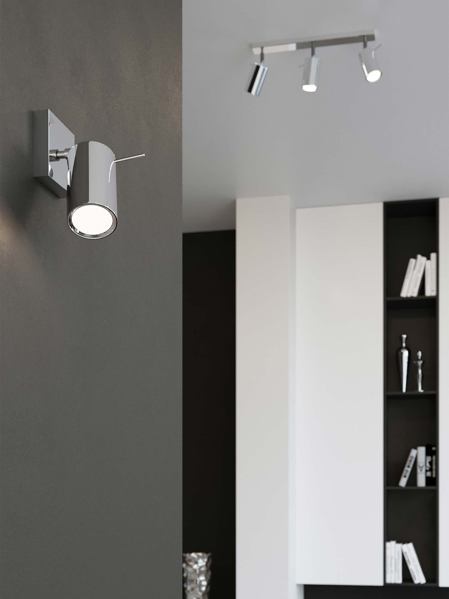 Do jakich wnętrz pasuje? Loft, industrial, minimalizm, nowoczesna klasyka. Biel korpusu i chłodny połysk chromu świetnie współgrają z naturalnym drewnem, betonem architektonicznym, cegłą czy gładkimi, jasnymi ścianami. To oprawa idealna do kuchni (praca + klimat), salonu (strefy funkcjonalne), jadalni (równomierne światło nad stołem), korytarza (akcenty na galerię zdjęć) czy gabinetu (precyzja i koncentracja).