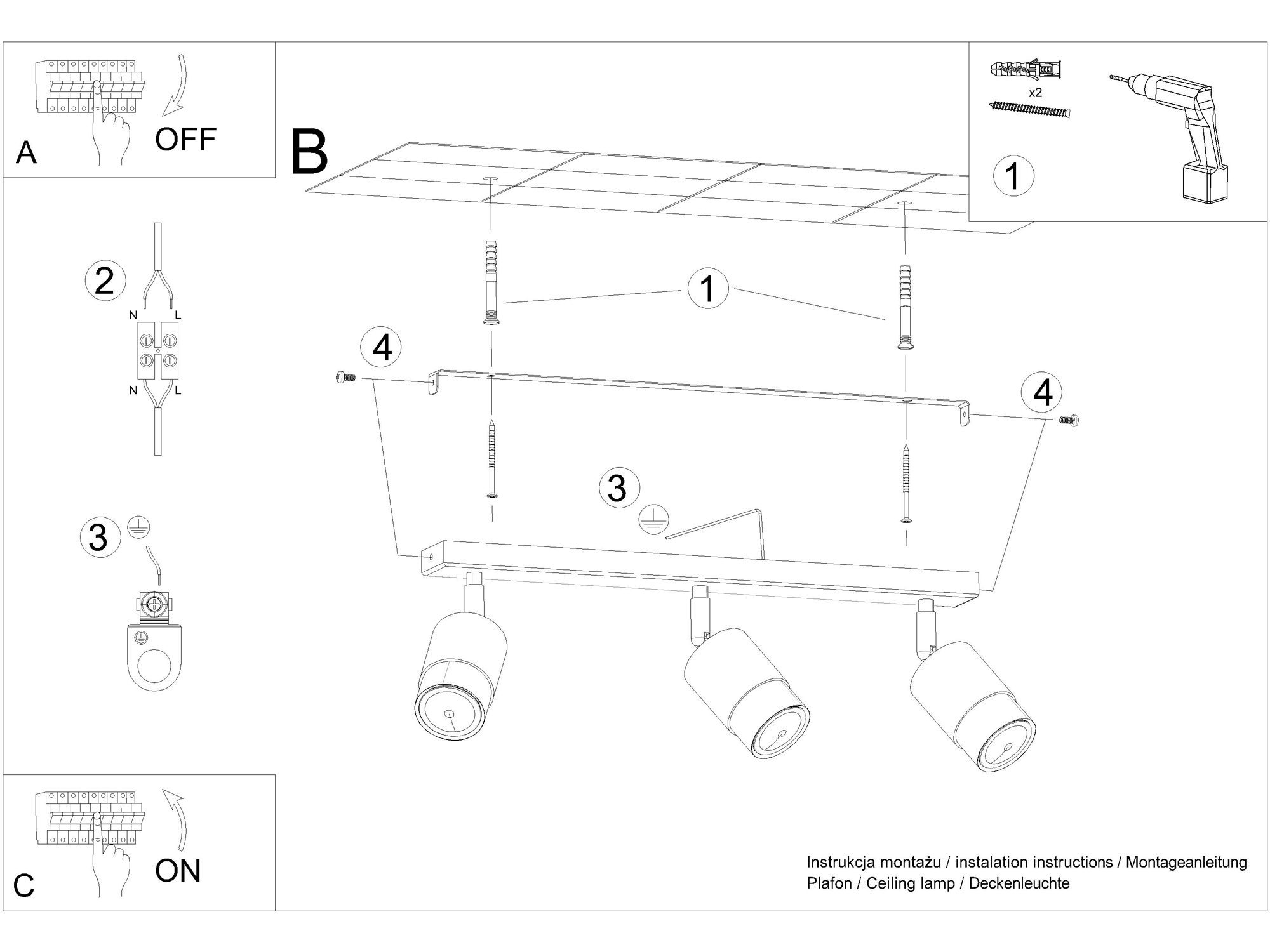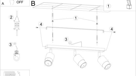 Źródło światła: GU10, 3x40W, 3x12W LED, 50-60Hz, ~220-230V, IP20, klasa ochronności I