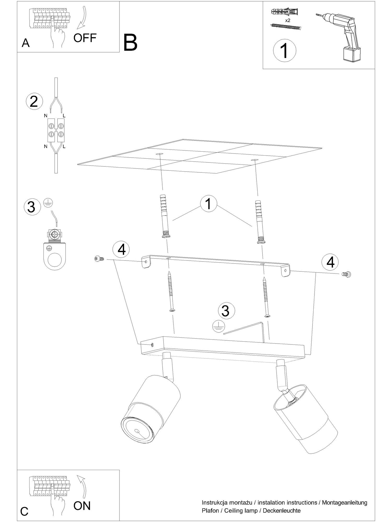 Źródło światła: GU10, 2x40W, 2x12W LED, 50-60Hz, ~220-230V, IP20, klasa ochronności I