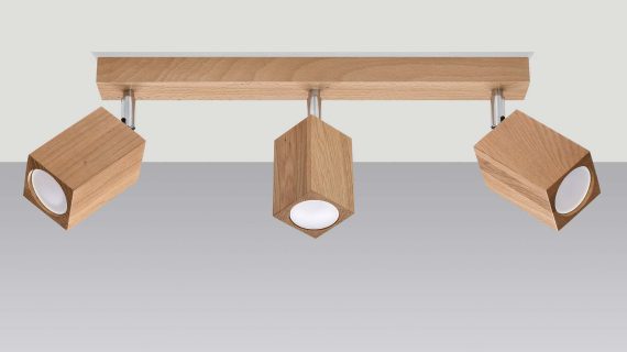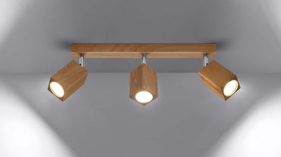 Listwa LED z czterema reflektorami w naturalnym drewnie