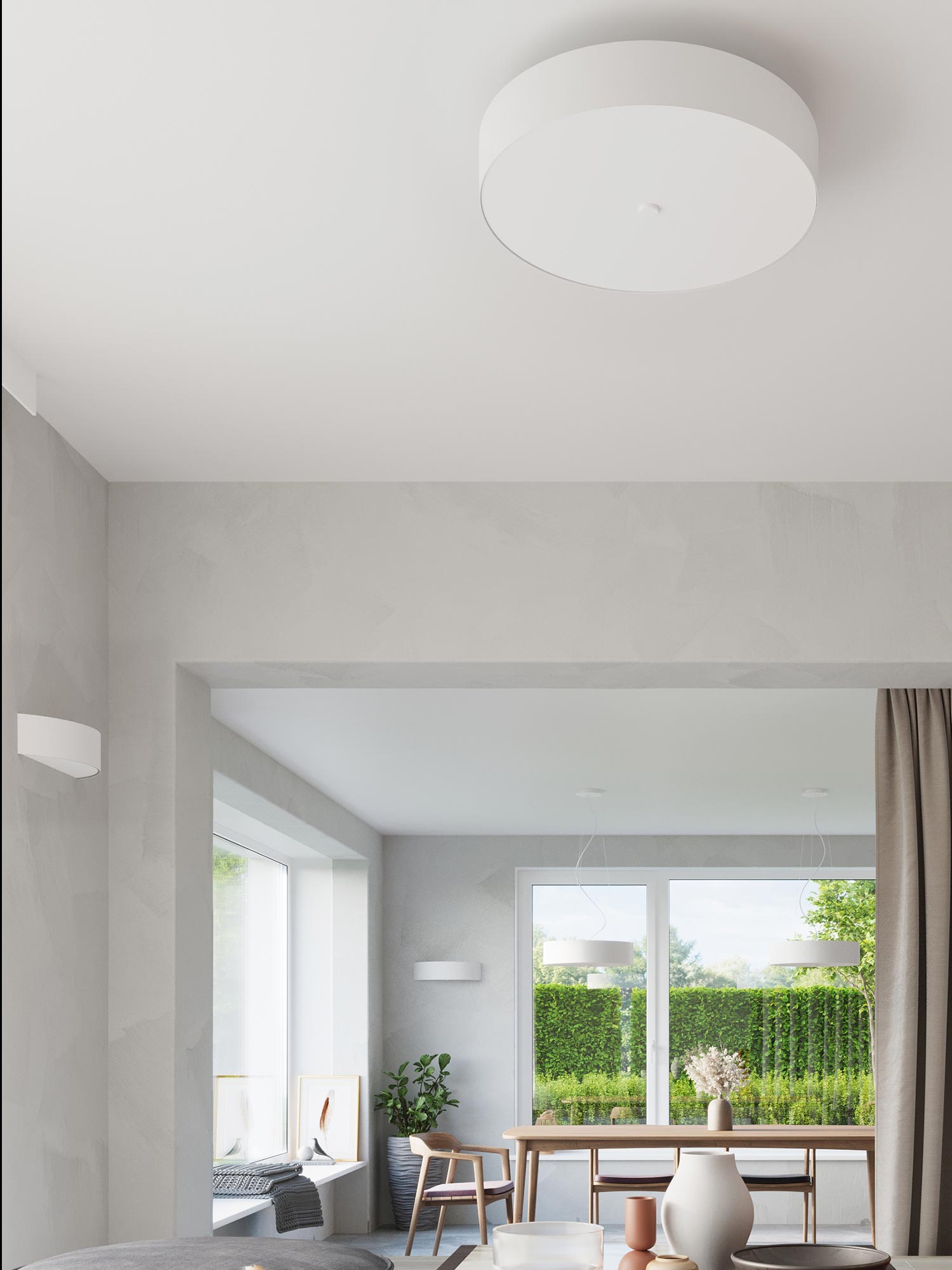 Seria SKY to synonim jakości i uniwersalności. Okrągła sylwetka o imponującym wymiarze 100 cm wygląda harmonijnie zarówno w nowoczesnym salonie z sofą modułową, jak i w przytulnej sypialni w stylu japandi. W jadalni równomiernie oświetla blat stołu, w pokoju dziecięcym jest łagodna dla oczu, a w domowym gabinecie tworzy klarowną, komfortową bazę świetlną.