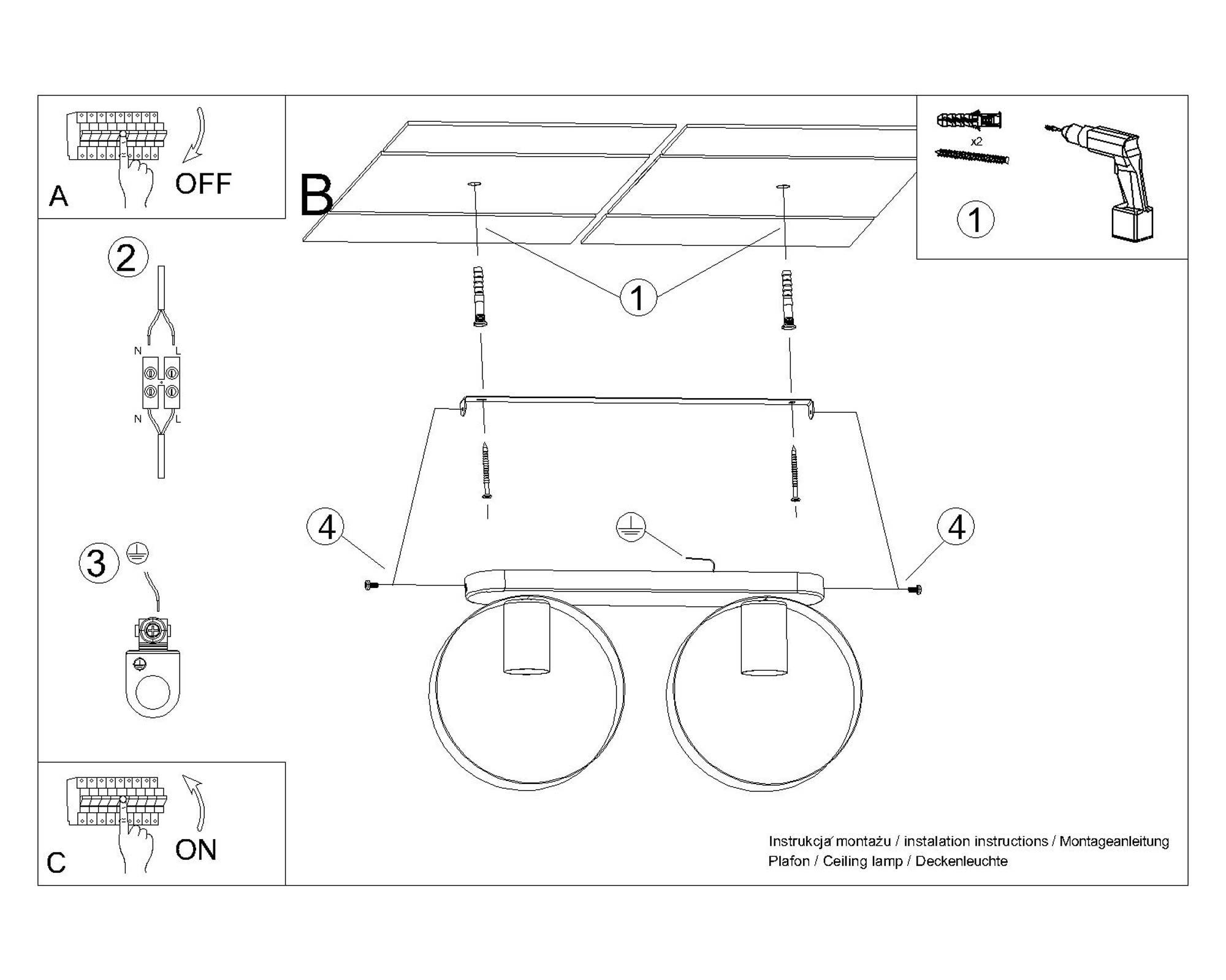 Źródło światła: E27, 2x60W, 2x15W LED, 50-60Hz, ~220-230V, IP20, klasa ochronności I