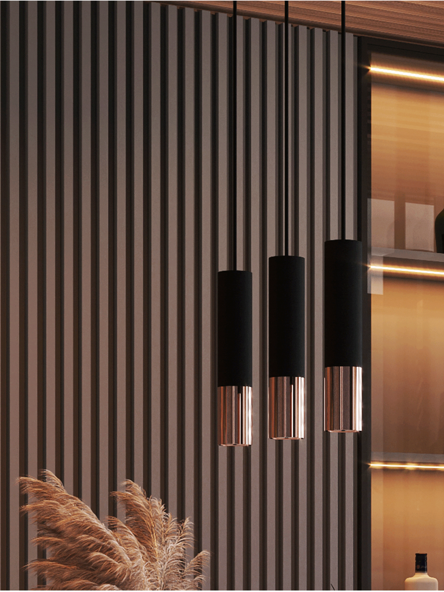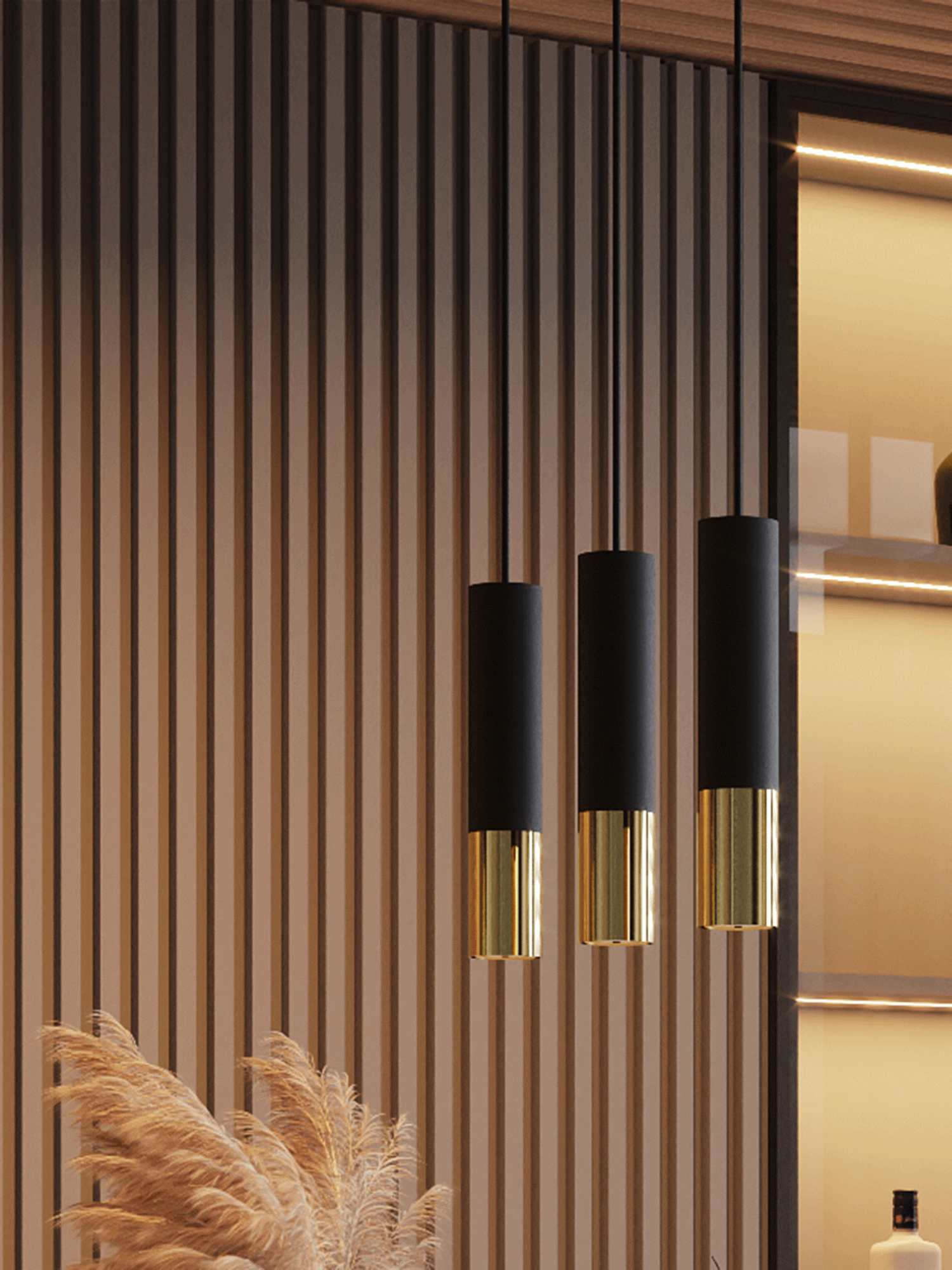 Czarna, matowa podstawa podkreślona połyskiem chromowanych detali przypomina luksusową biżuterię, która w subtelny sposób zdobi przestrzeń. Wnosi do wnętrza atmosferę elegancji i spokoju, tworząc idealne tło zarówno do codziennych chwil, jak i wieczornego relaksu.