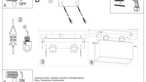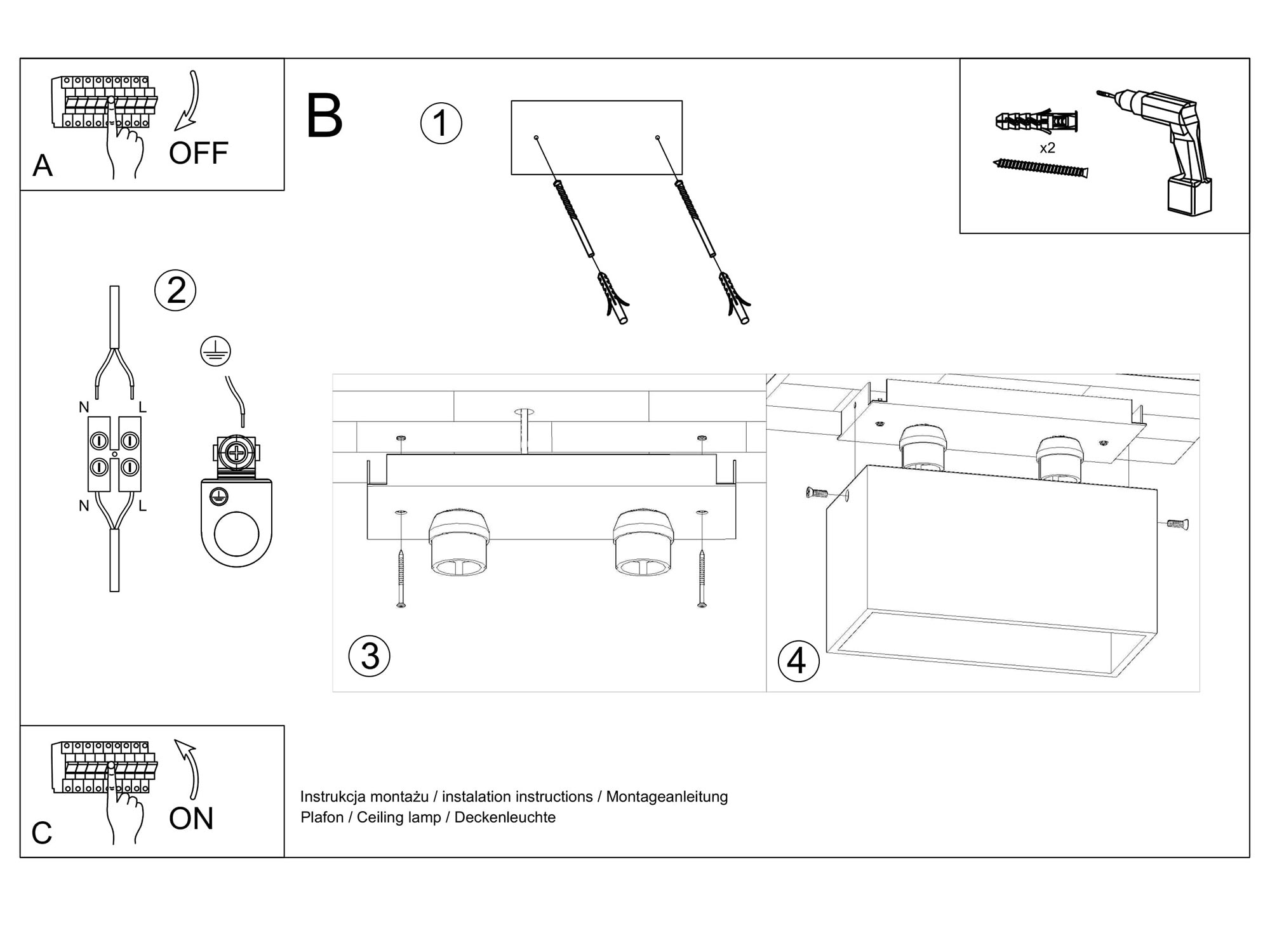 Źródło światła: GU10, 2x40W, 2x12W LED, 50-60Hz, ~220-230V, IP20, klasa ochronności I