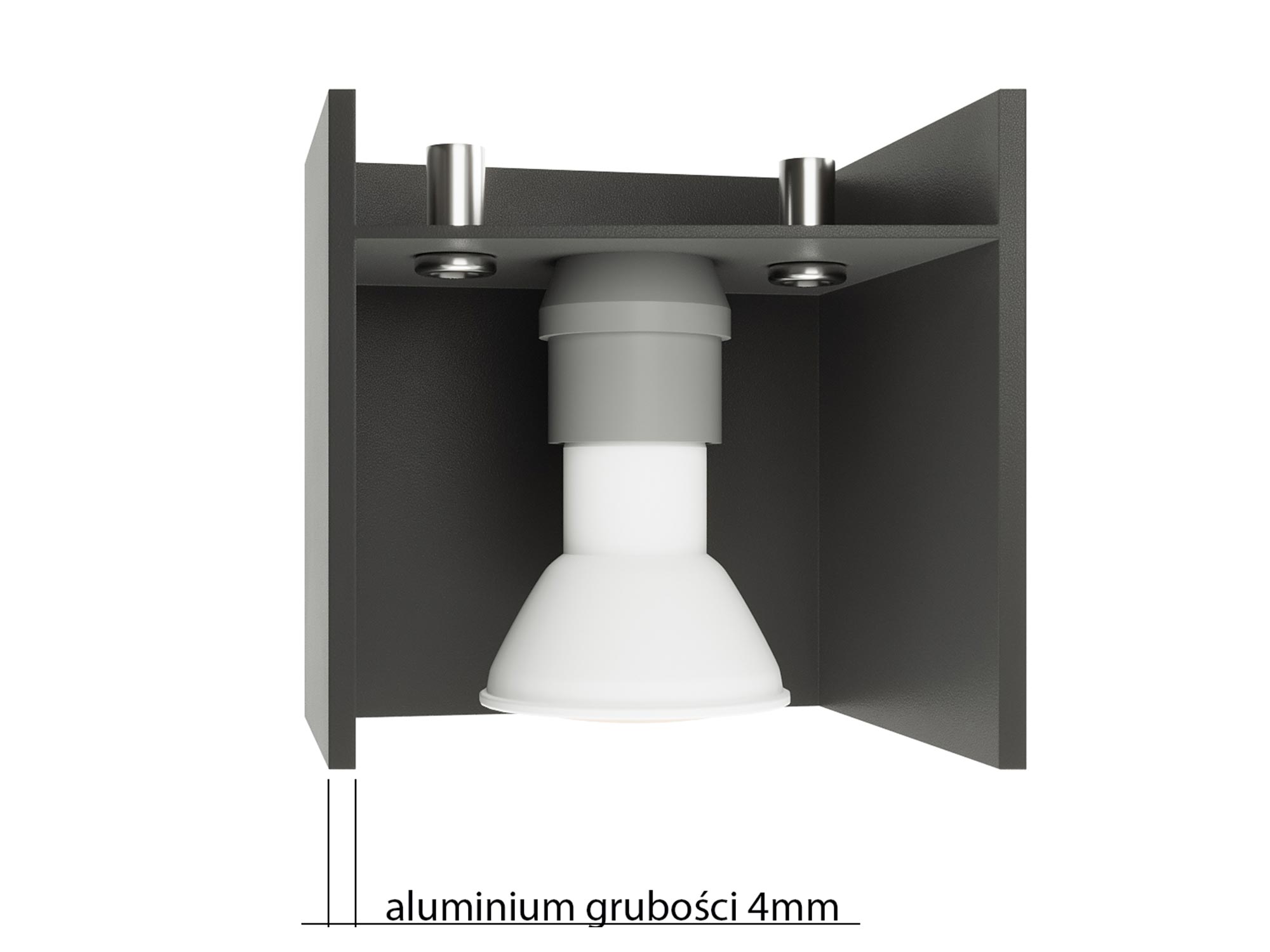 QUARK MAXI to definicja nowoczesnego minimalizmu: prostokątna podstawa 20 × 10 cm z dwoma oprawami, które kierują światło dokładnie tam, gdzie chcesz. Aluminiowa obudowa jest lekka, trwała i odporna na codzienne użytkowanie, dlatego świetnie sprawdzi się w korytarzach, przedpokojach, kuchniach, garderobach czy strefach wejściowych. Aluminium dobrze odprowadza ciepło, co sprzyja długiej żywotności żarówek LED.