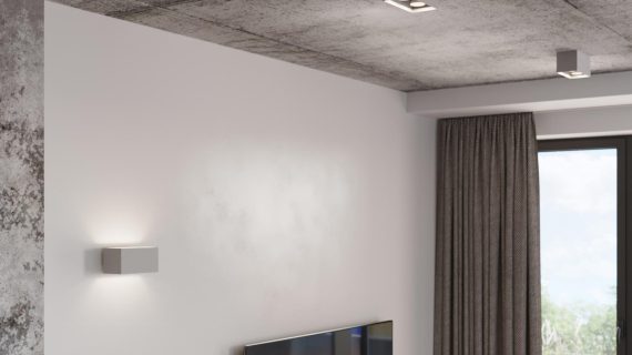 Jasne wnętrze z szarym plafonem – oświetlenie LED na suficie