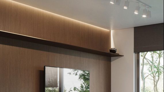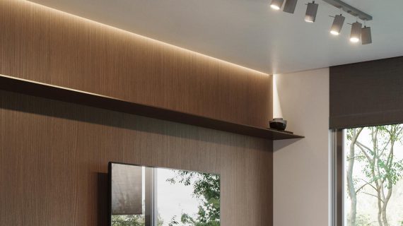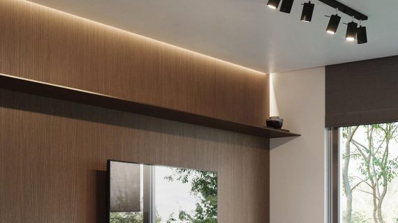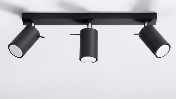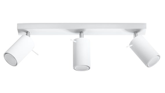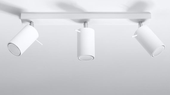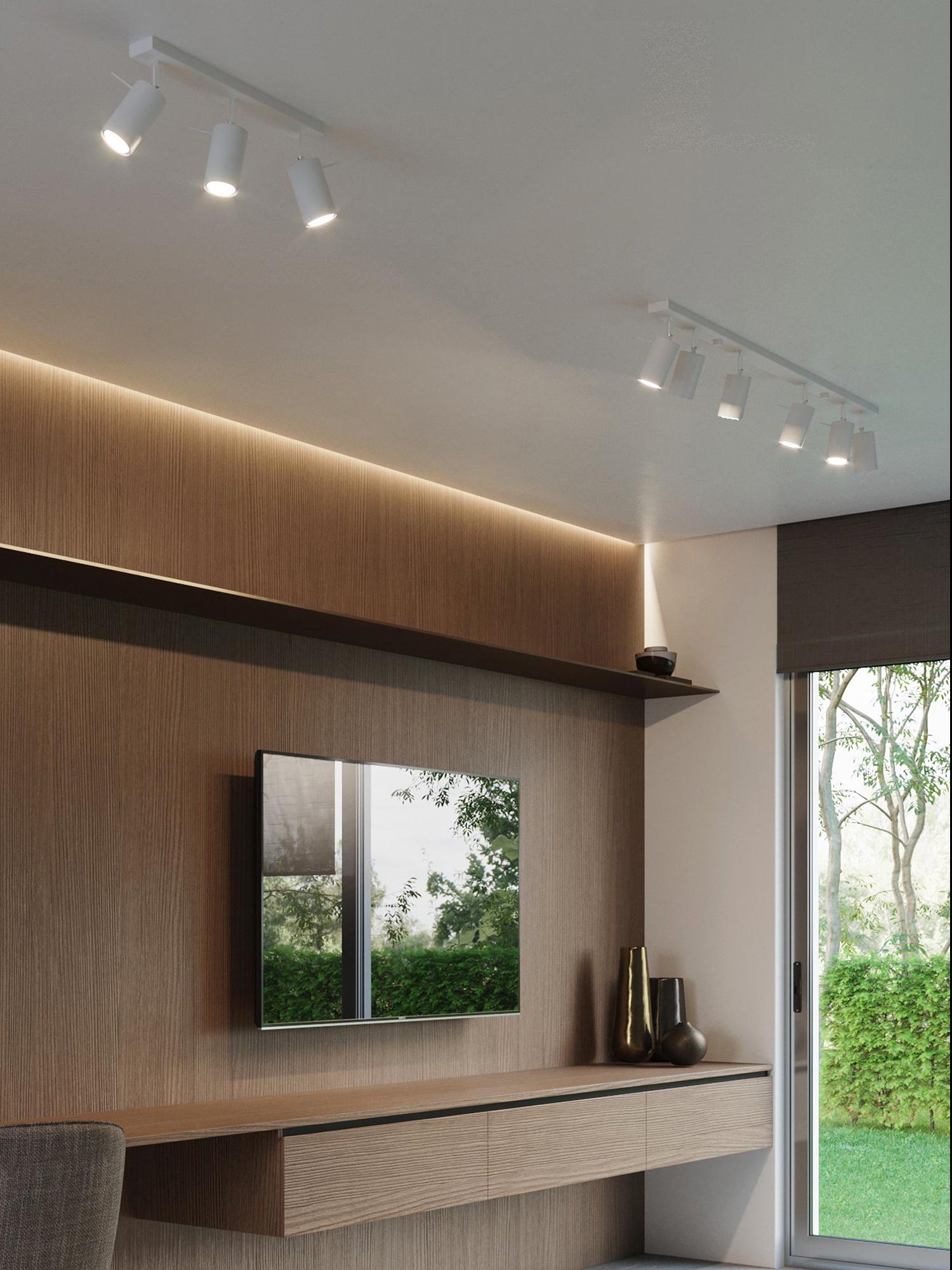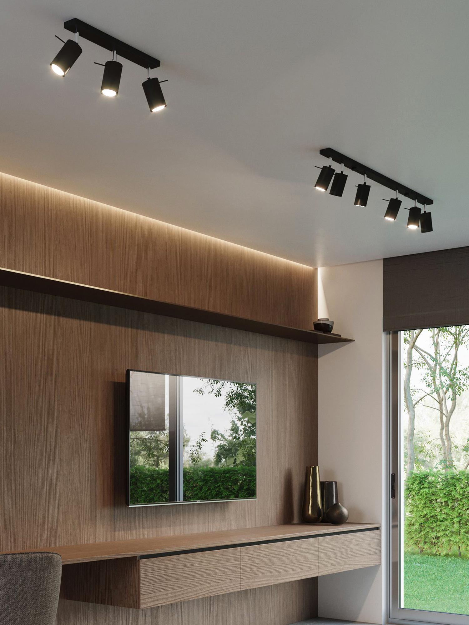 - Porządek na suficie – minimalistyczna listwa zbiera trzy punkty w estetyczną całość.