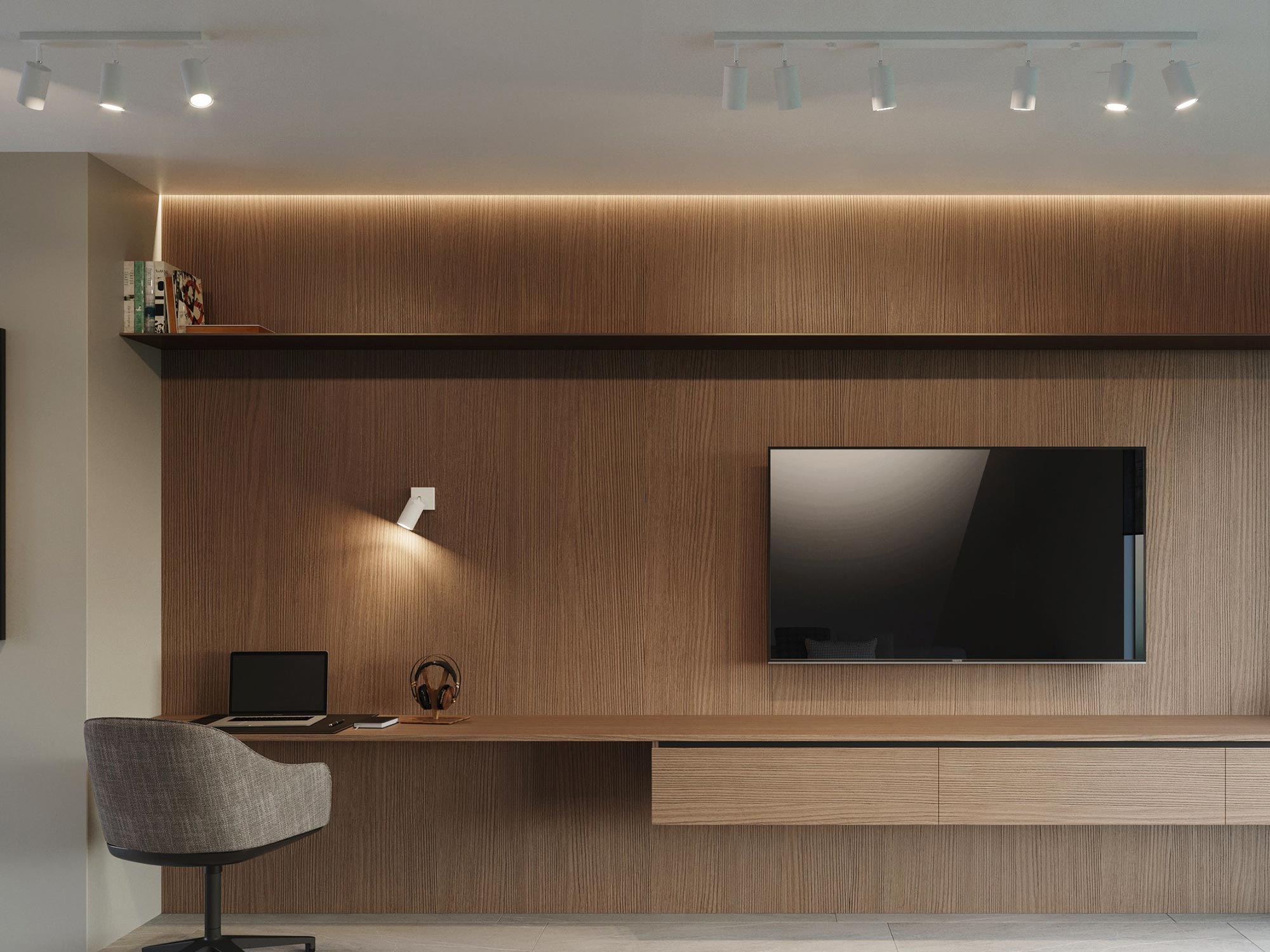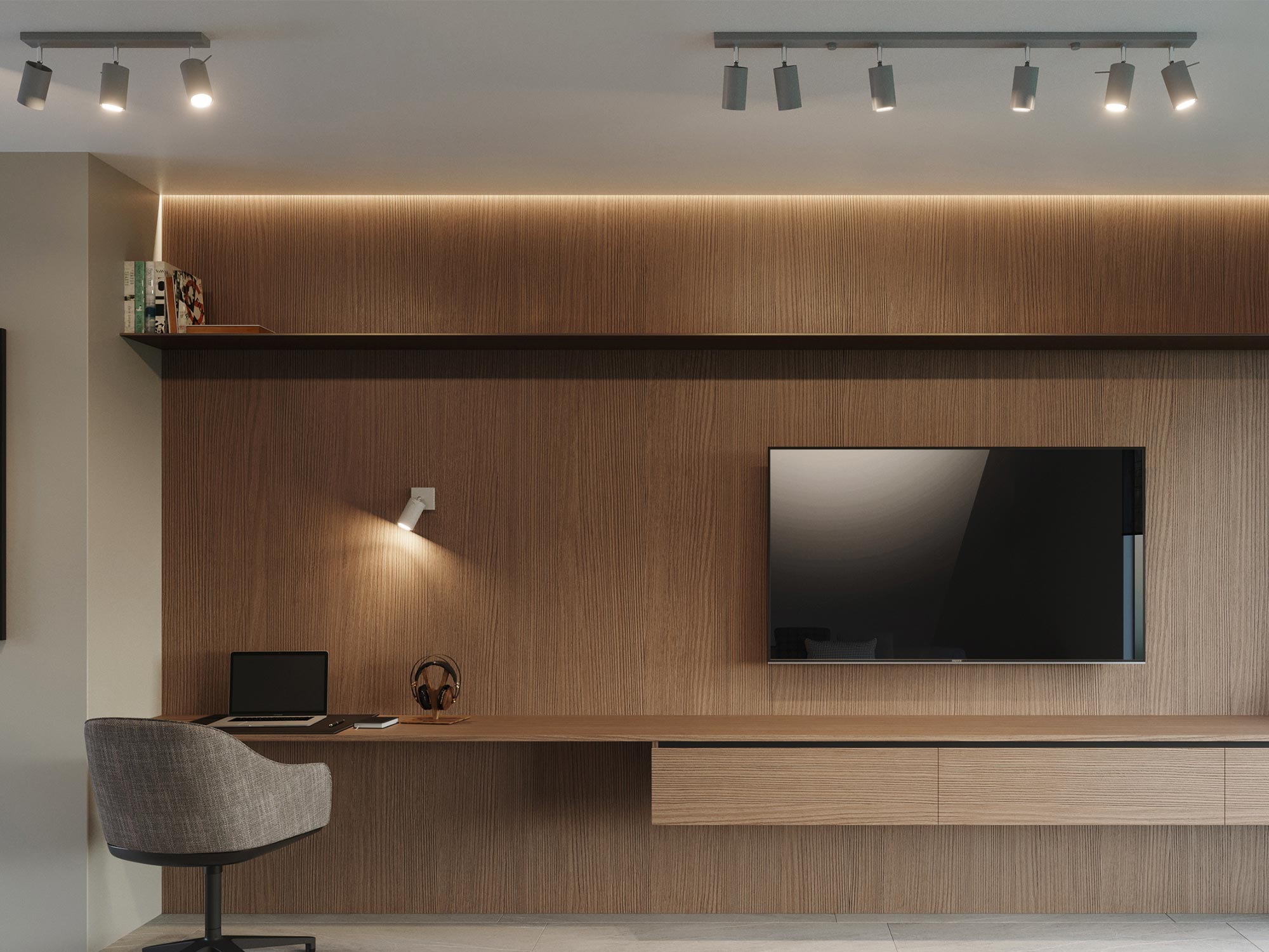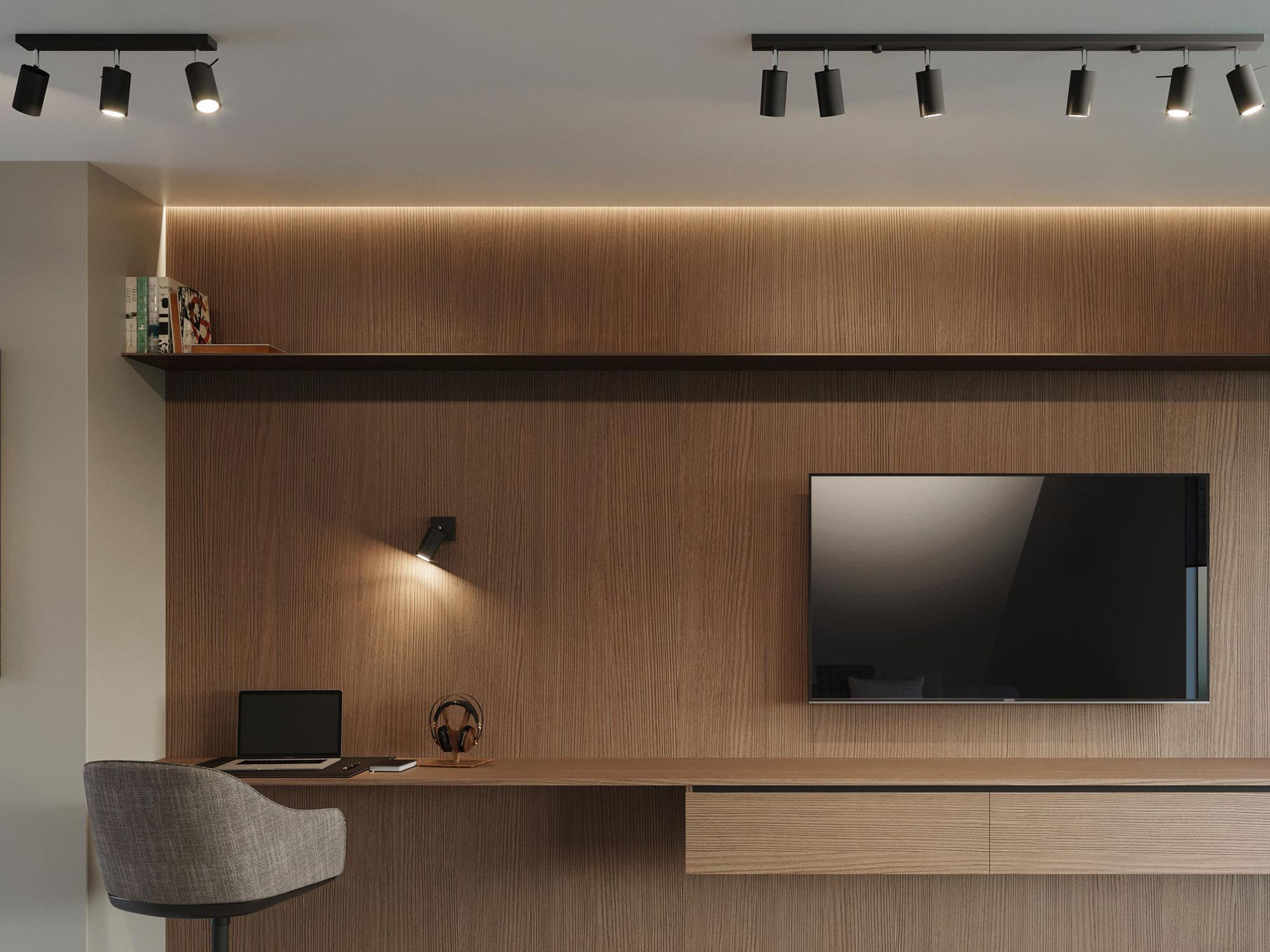 Zobacz, jak będzie wyglądać Twoja sypialnia marzeń: ciepła barwa tworzy przytulne tło, a jeden reflektor akcentuje obraz nad łóżkiem. Rano zmień scenę – ustaw neutralną barwę nad toaletką lub biurkiem. Pełna kontrola jednym ruchem dłoni.