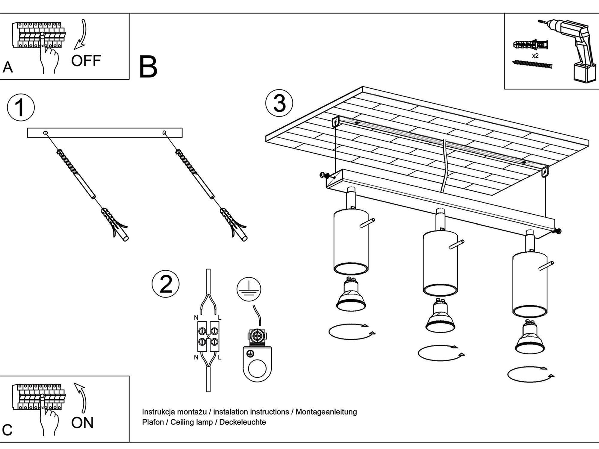 Źródło światła: GU10, 3x40W, 3x12W LED, 50-60Hz, ~220-230V, IP20, klasa ochronności I