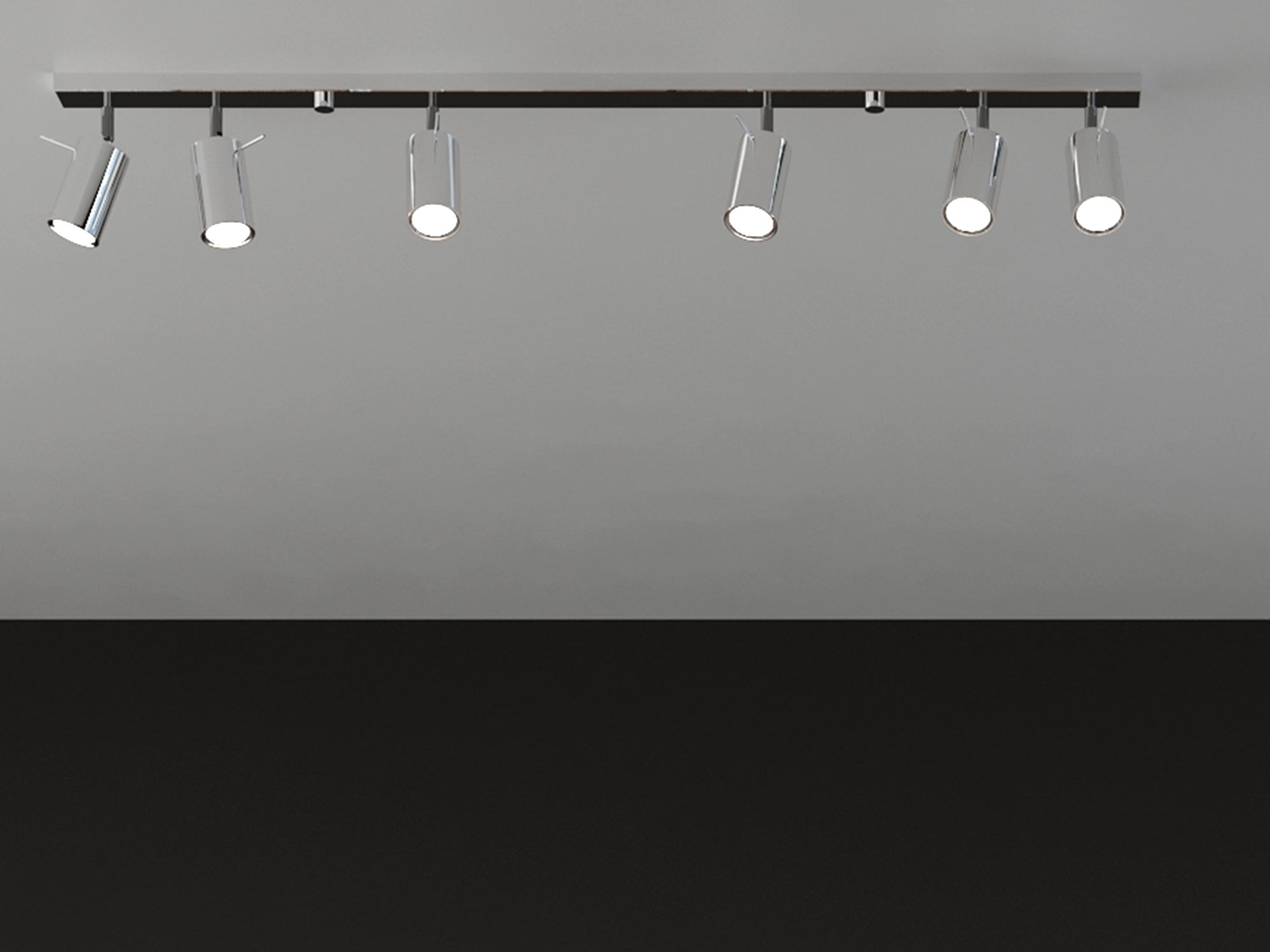 Projekt. Smukła listwa 45 cm mieści trzy mobilne reflektory. To kompaktowa forma, która porządkuje sufit i tworzy elegancki rytm światła nad stołem, blatem lub w ciągu komunikacyjnym. Minimalizm formy sprawia, że oprawa wizualnie „odchudza” przestrzeń, zostawiając scenę dla światła.