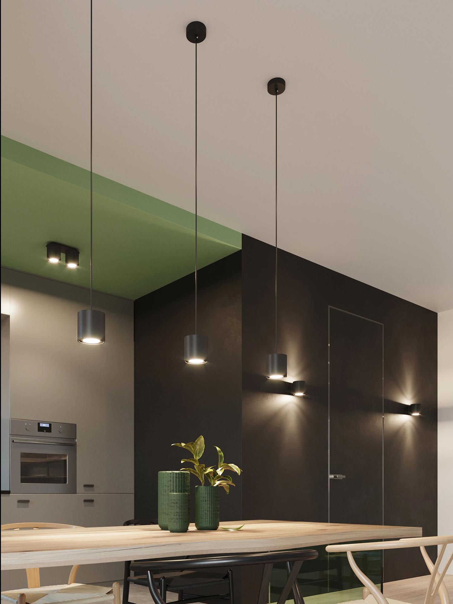 OCEANUS 1 Antracyt to esencja nowoczesnego minimalizmu. Jego cylindryczny klosz skupia i kieruje strumień światła w dół, tworząc nastrojową „plamę” świetlną, która pięknie rysuje faktury i materiały we wnętrzu. To idealne rozwiązanie do korytarza, sypialni, garderoby, kuchni nad ciągiem roboczym albo do strefy wejściowej, gdzie liczy się czytelność światła i czysta linia oprawy.