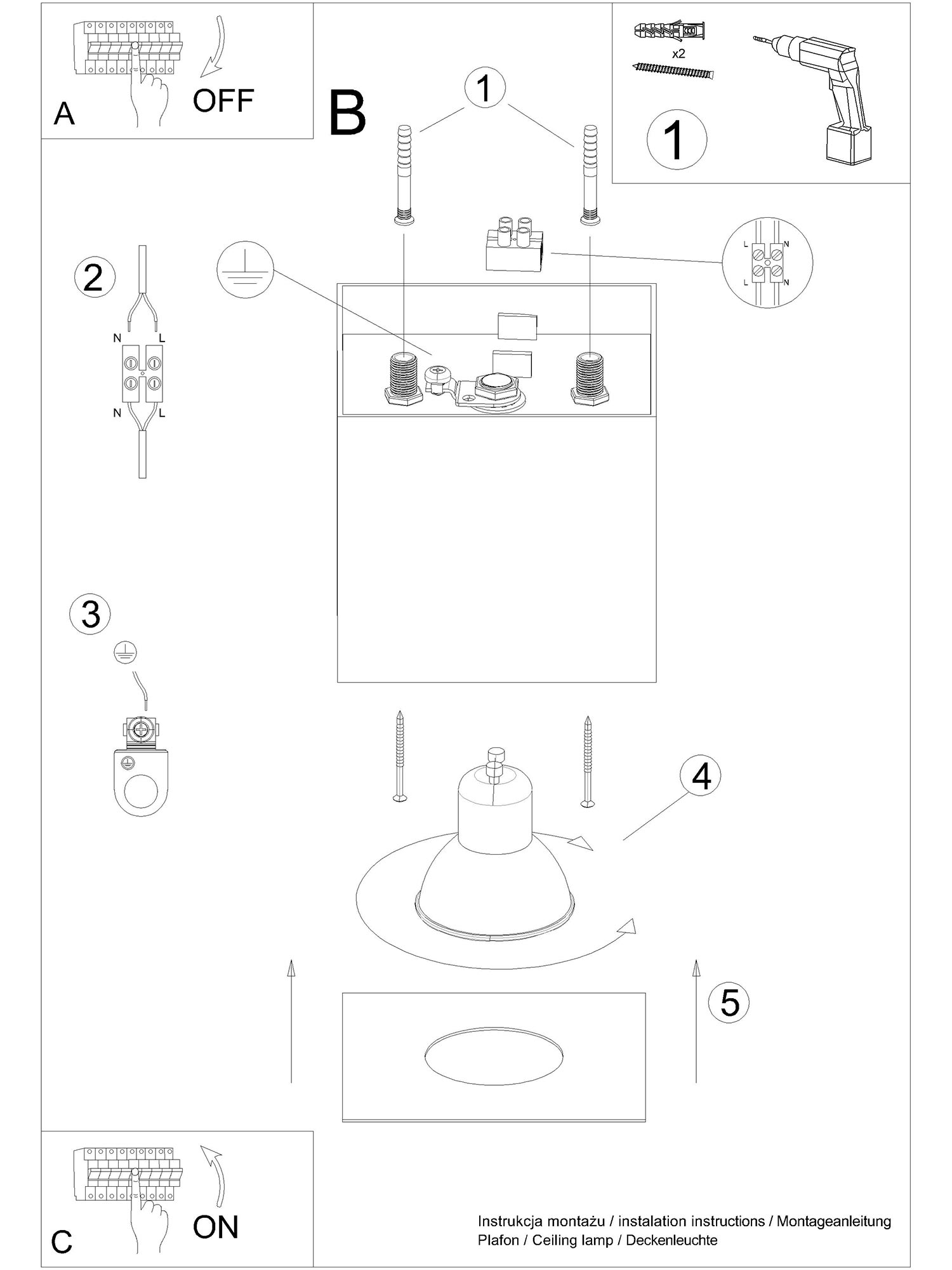• Źródło światła: Wyposażony w żarówkę LED typu GU10, maksymalna moc 10W, ~230V, 50Hz, IP20, klasa ochronności I.