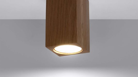 KEREN 10 dąb to przemyślany projekt: kompaktowy format (6 × 6 × 10 cm) oraz prostopadłościenna forma sprawiają, że oprawa wygląda lekko i schludnie na każdym suficie. Dąb wprowadza do wnętrza naturalne ciepło i teksturę, a metalowe elementy konstrukcyjne dodają mu nowoczesnego kontrapunktu. Dzięki temu plafon świetnie odnajduje się w aranżacjach skandynawskich, japandi, modern i loftowych, ale równie dobrze uzupełni klasyczne kompozycje z drewnem i tekstyliami.