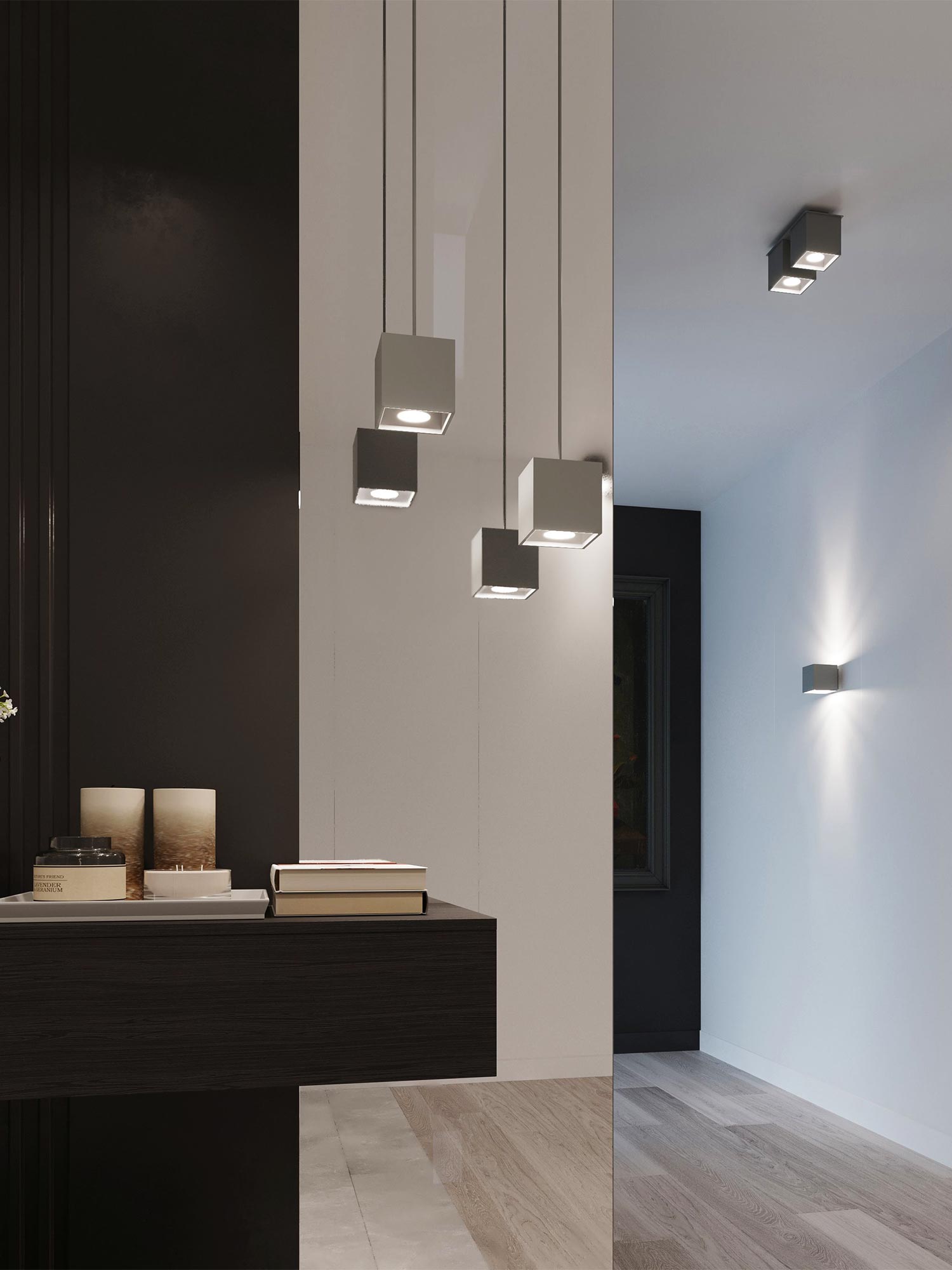 • Uniwersalny design: Kolorystyka QUARK 1 w czerni, szarości i bieli sprawia, że lampa wpasuje się w każdy styl wnętrza, od skandynawskiego minimalizmu po surowy loft.