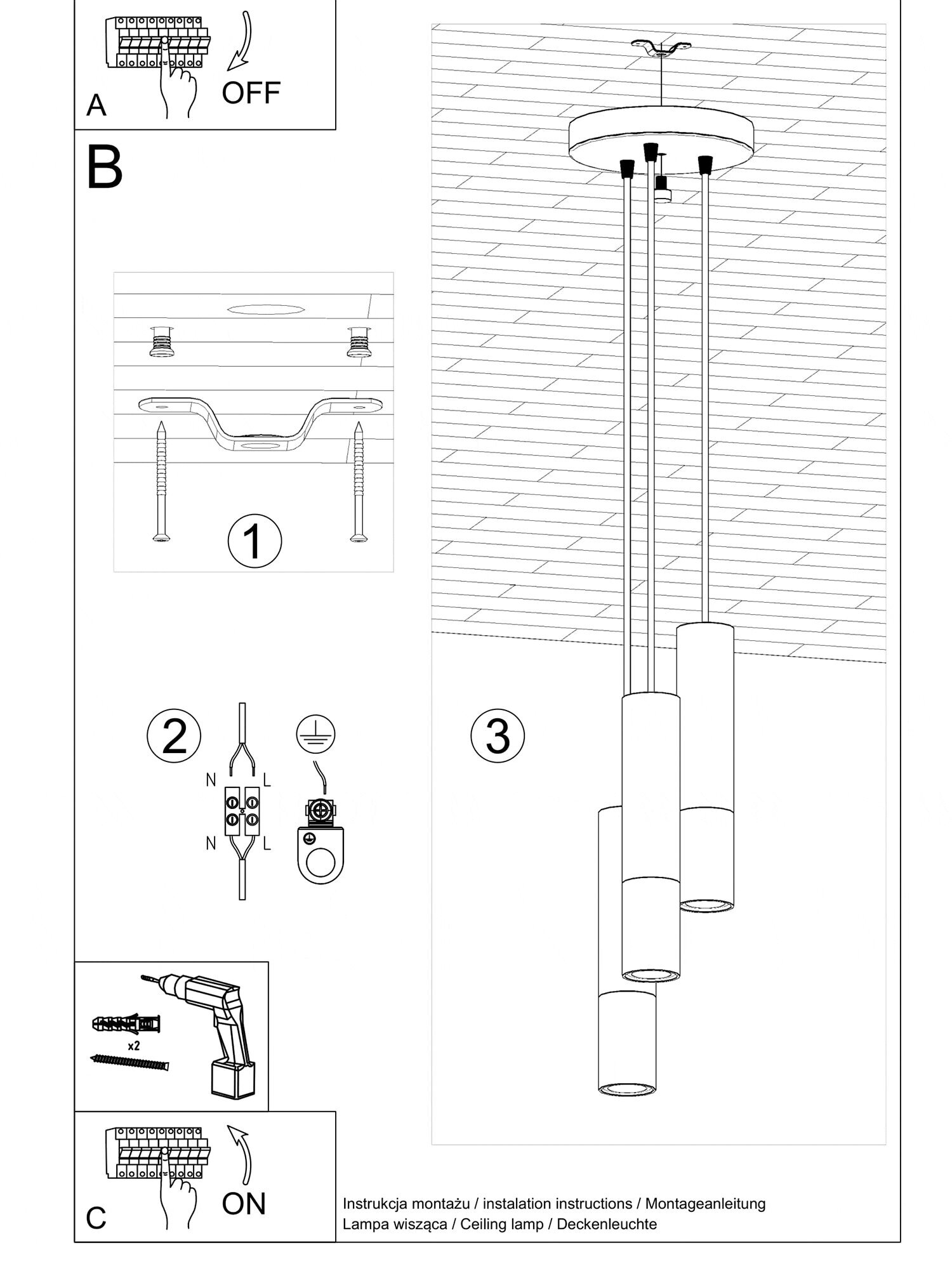 Źródło światła: GU10, 3x40W, 3x12W LED, 50-60Hz, ~220-230V, IP20, klasa ochronności I