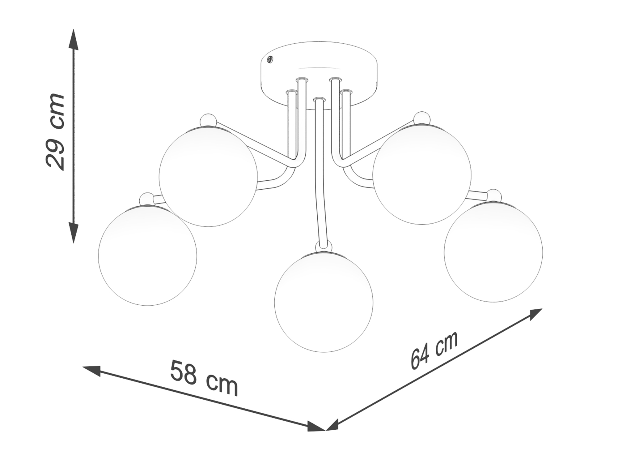 - Pięć źródeł światła – idealne do dużych salonów i przestronnych jadalni.