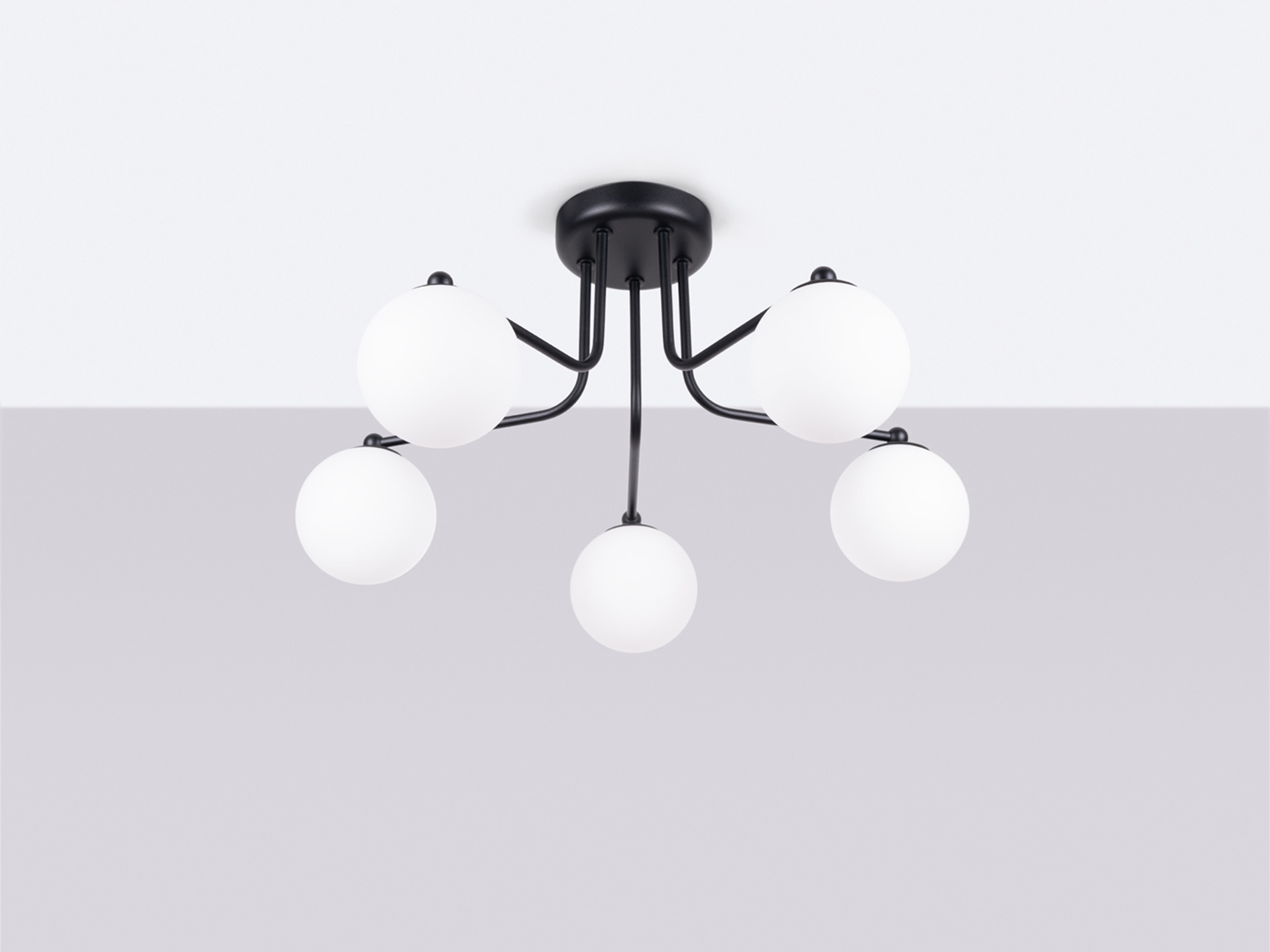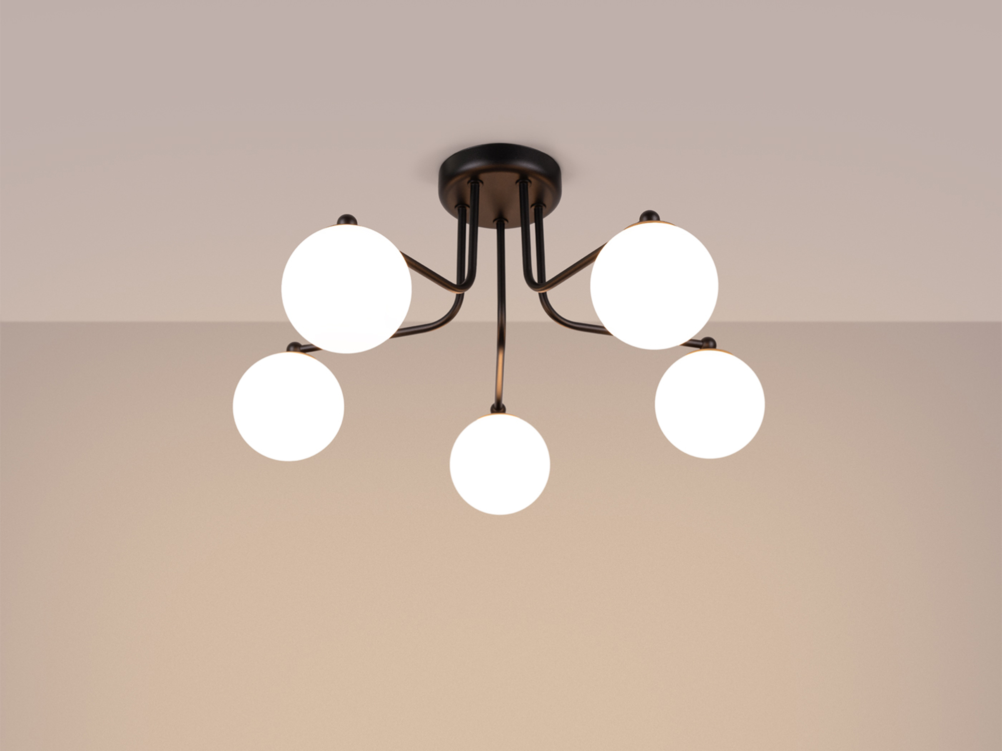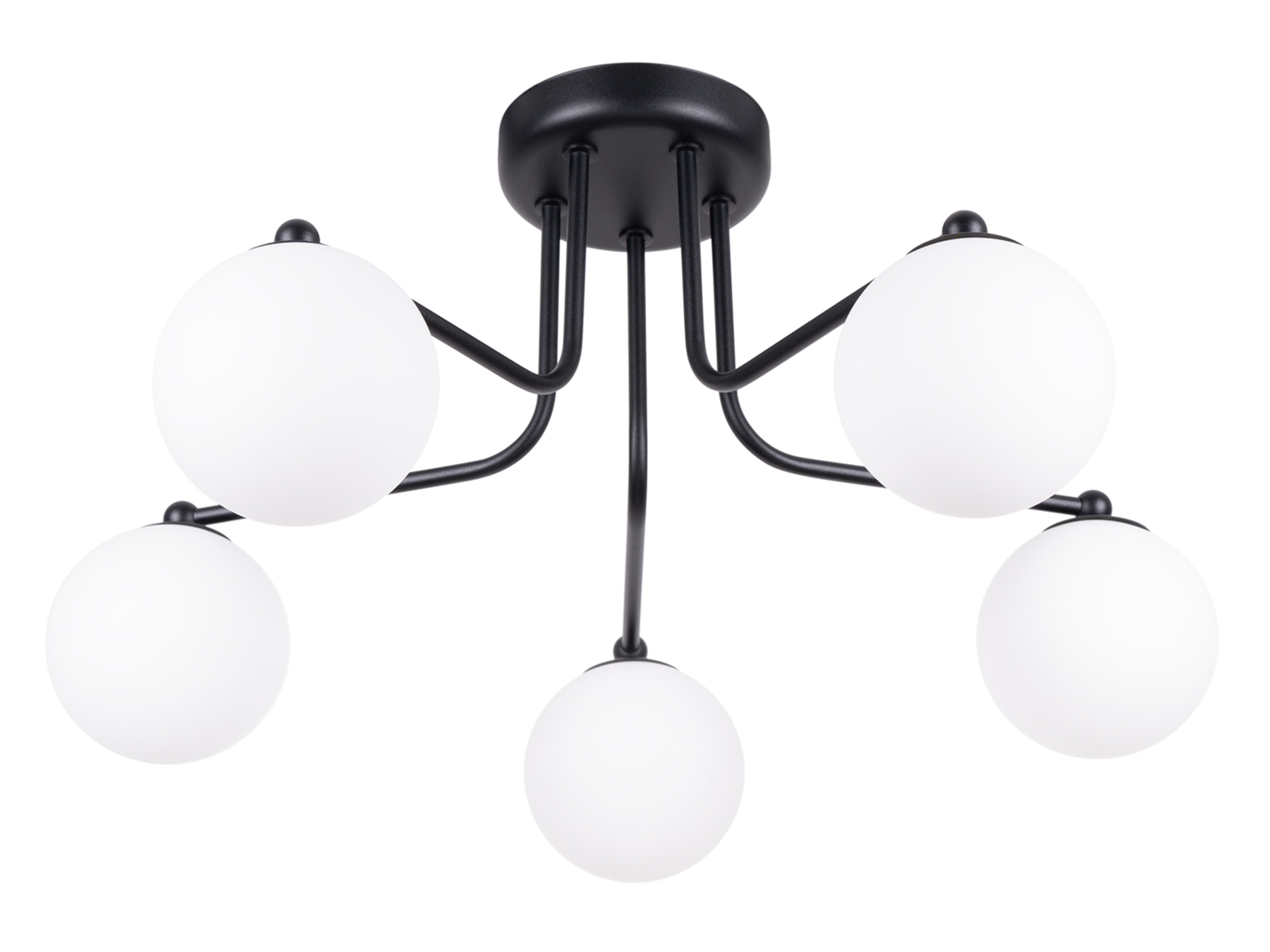 Ten żyrandol to odpowiedź na potrzeby osób, które pragną stworzyć wnętrze pełne klasy i harmonii. Czarny kolor w połączeniu z białymi detalami nadaje mu designerskiego charakteru, a pięć źródeł światła gwarantuje równomierne oświetlenie całego pomieszczenia.