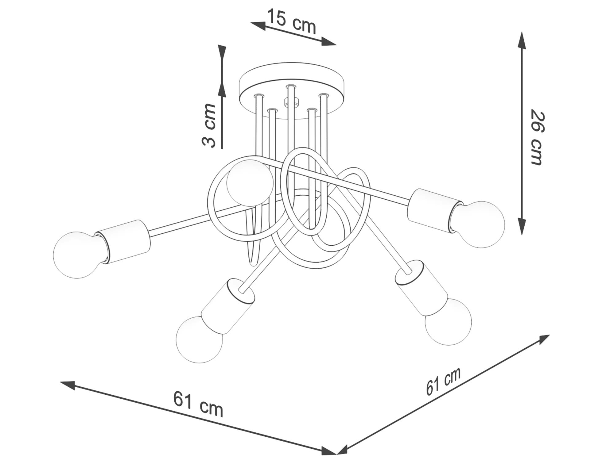 • Pięć źródeł światła – doskonałe do większych wnętrz, równomiernie oświetla całe pomieszczenie.