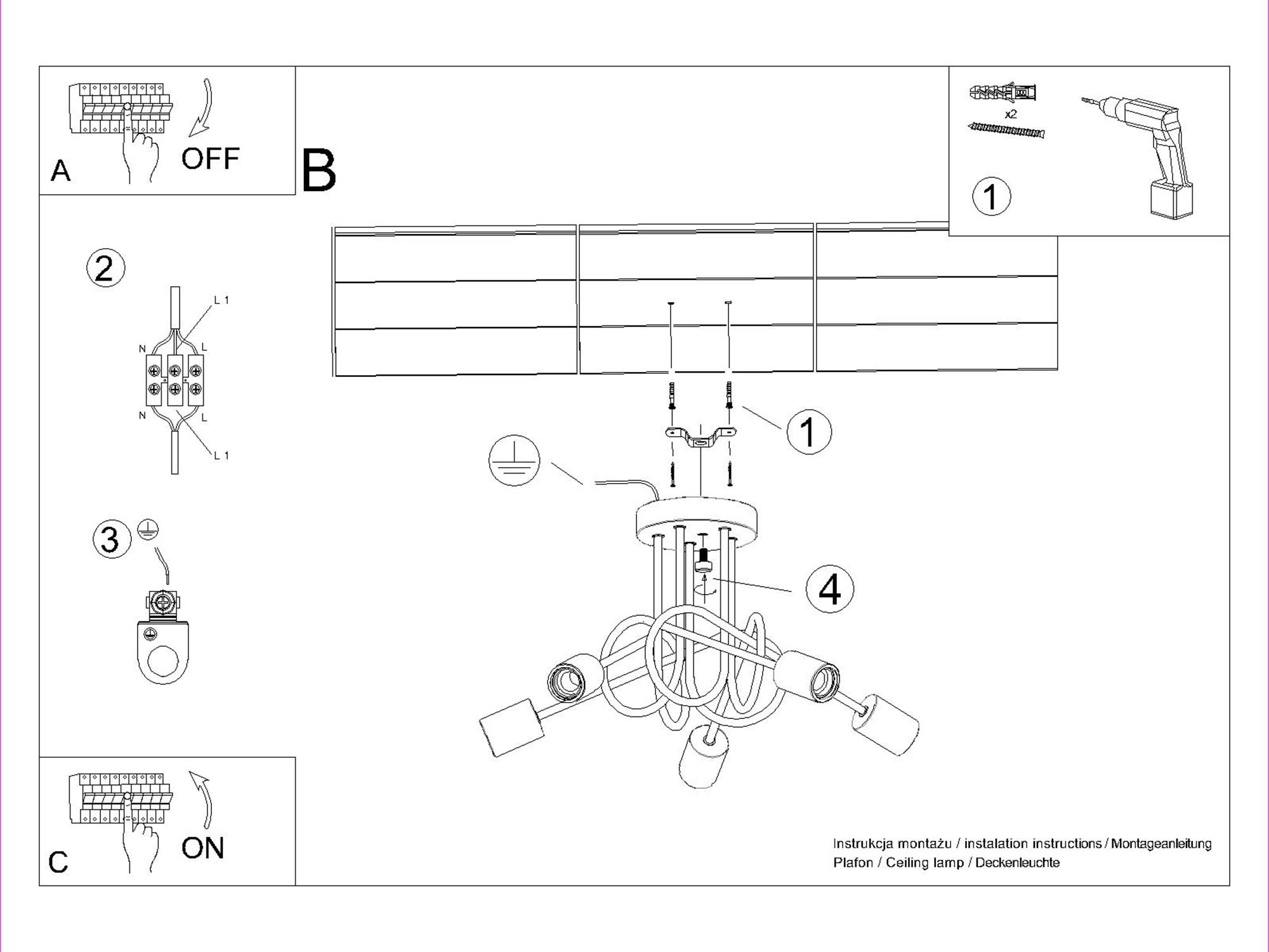 Źródło światła: E27, 5x max 15W LED, ~230V, 50Hz, IP20, klasa ochronności II