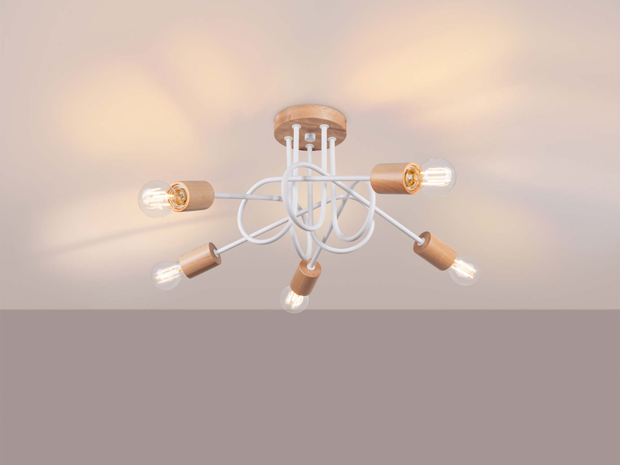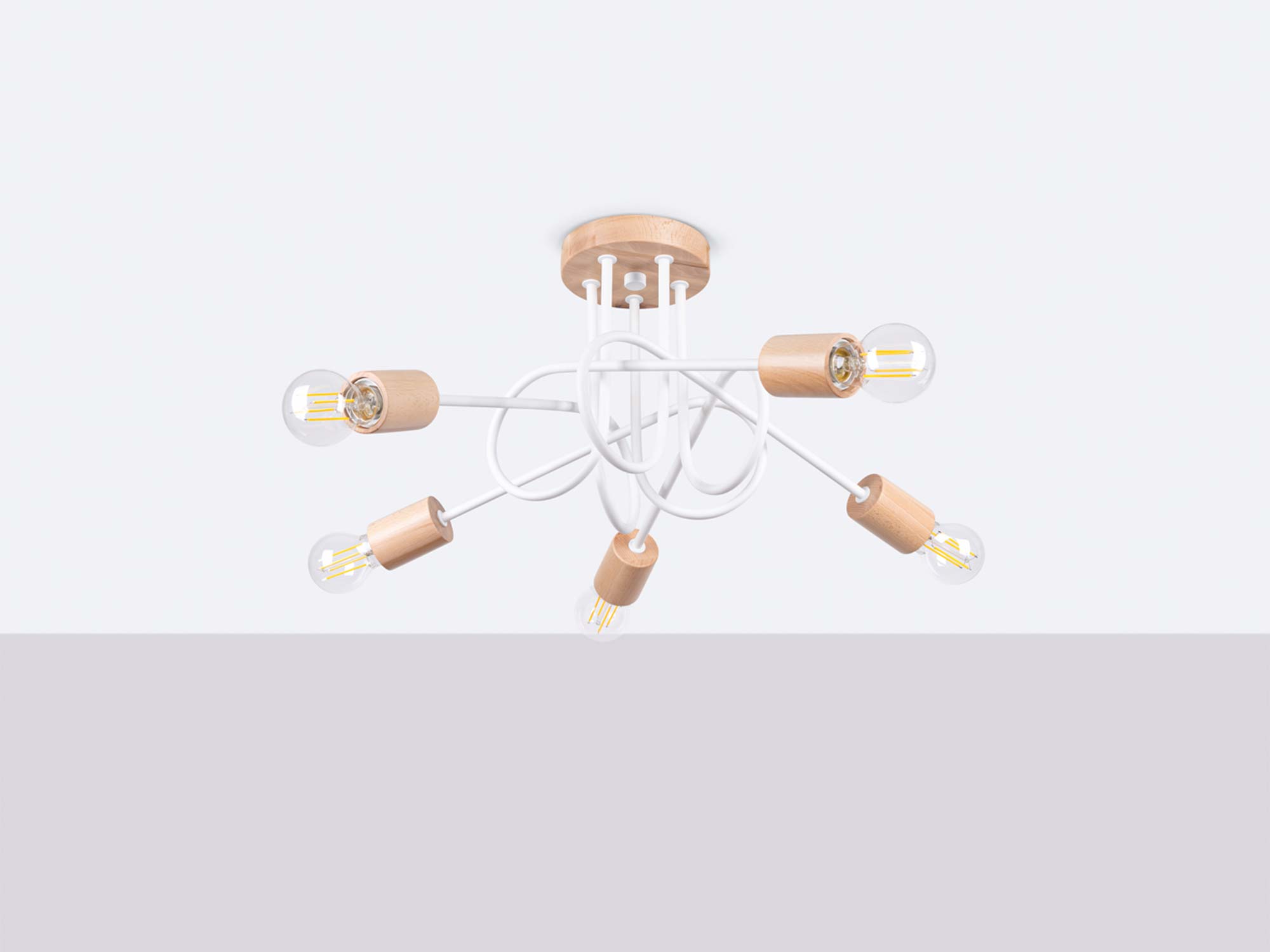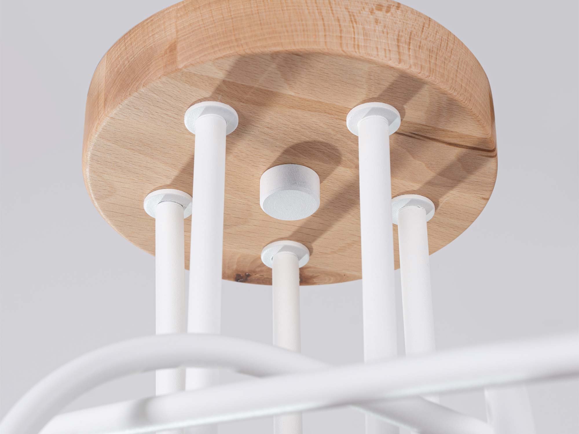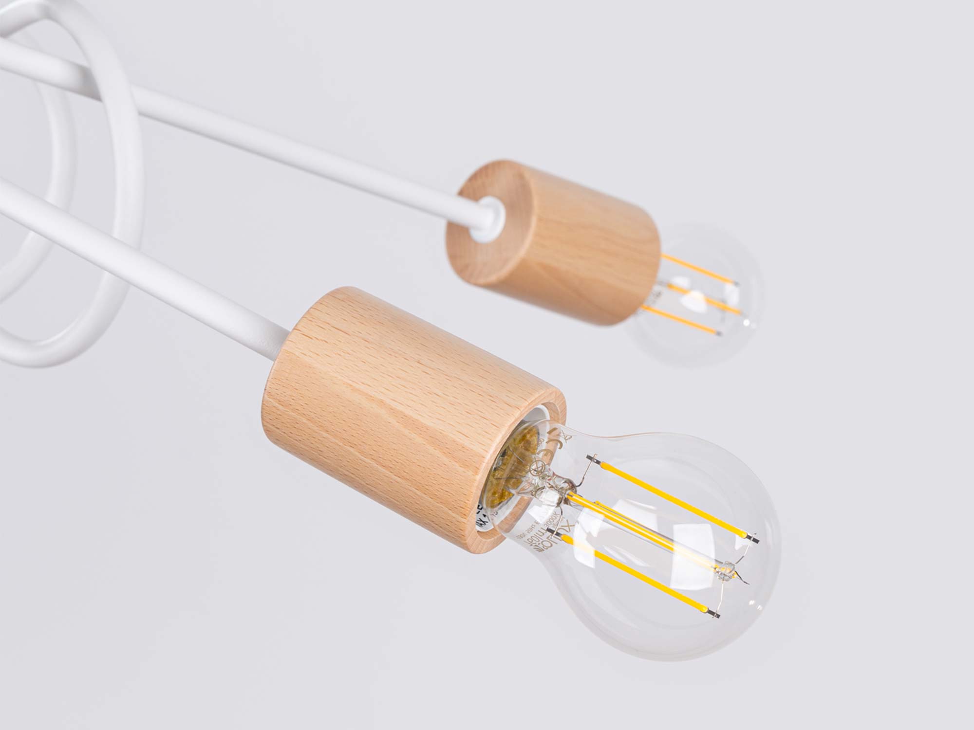 Żyrandol IGNIS 5 łączy klasyczną formę z naturalnym urokiem drewna, dzięki czemu jest doskonałym wyborem dla osób ceniących ponadczasowe piękno. Jego biała konstrukcja nadaje lekkości, a drewniane akcenty wprowadzają harmonię i naturalność. To lampa, która nie tylko oświetla, ale również dekoruje wnętrze, stając się wyjątkową ozdobą.