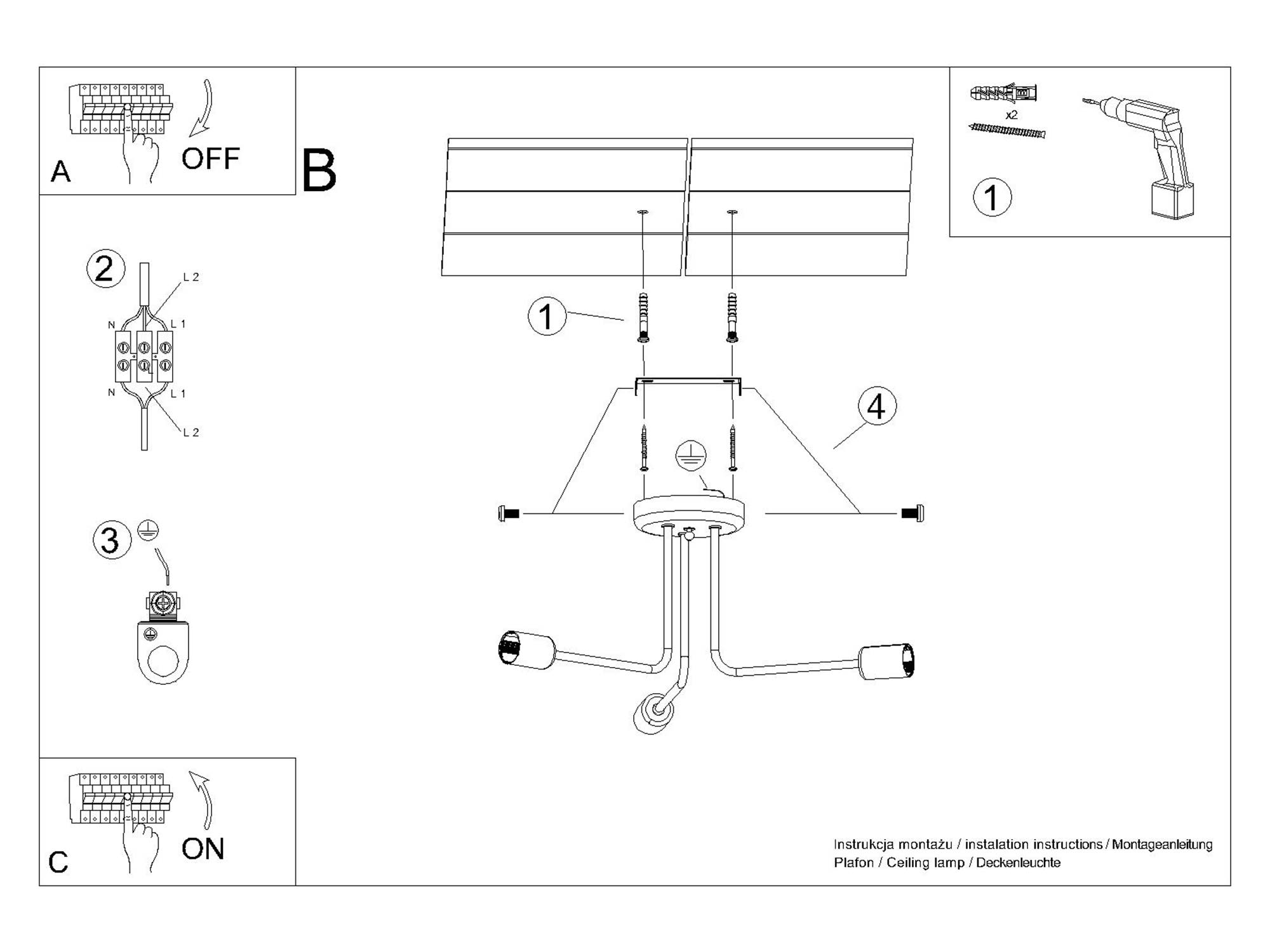 - Ilość źródeł światła: 3 × E27